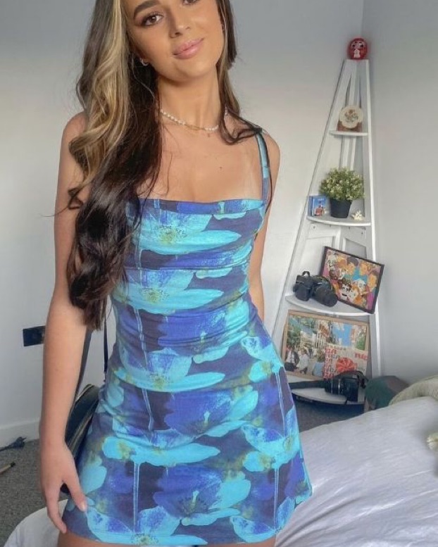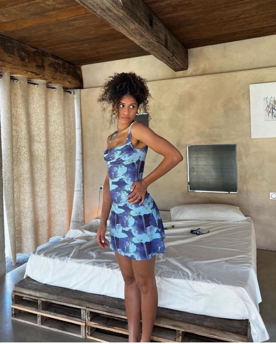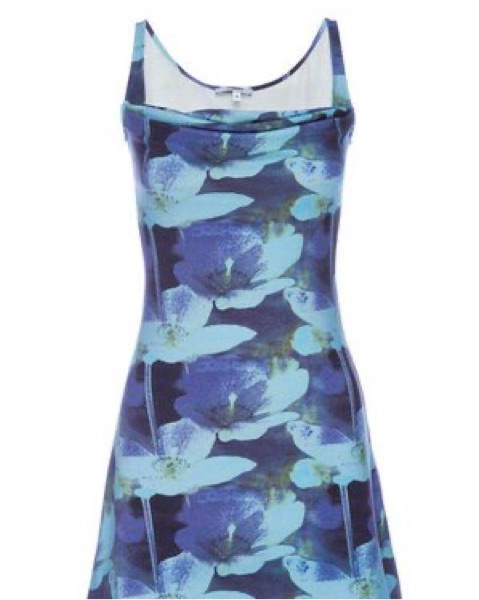 Miaou ginger dress with Azul pattern (as seen in Euphoria s2). Material is a soft jersey knit fabric