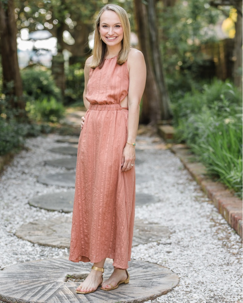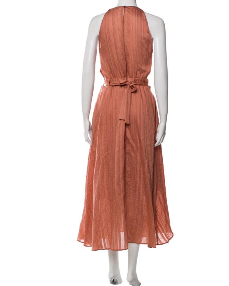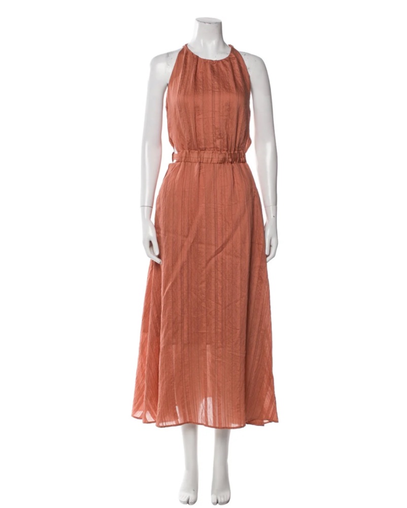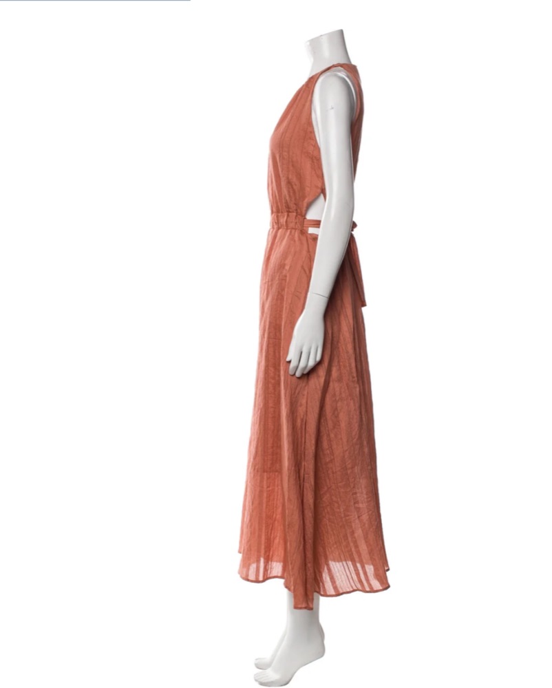 Sandro mid length dress; linen material; high neck; cutouts on side; tie back