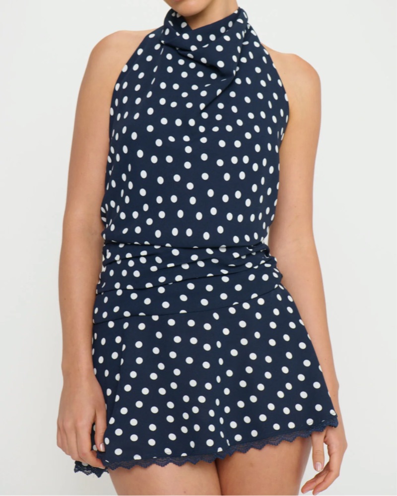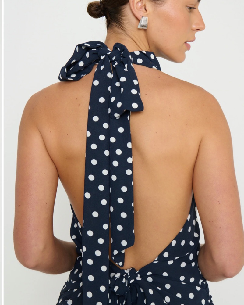 *dry cleaning price included* Designed with a chic halter neckline and a trendy drop waist, this flouncy, flirty silhouette knows how to make an entrance. The open back lets you show a little skin, and the adjustable tie gives you the perfect fit.