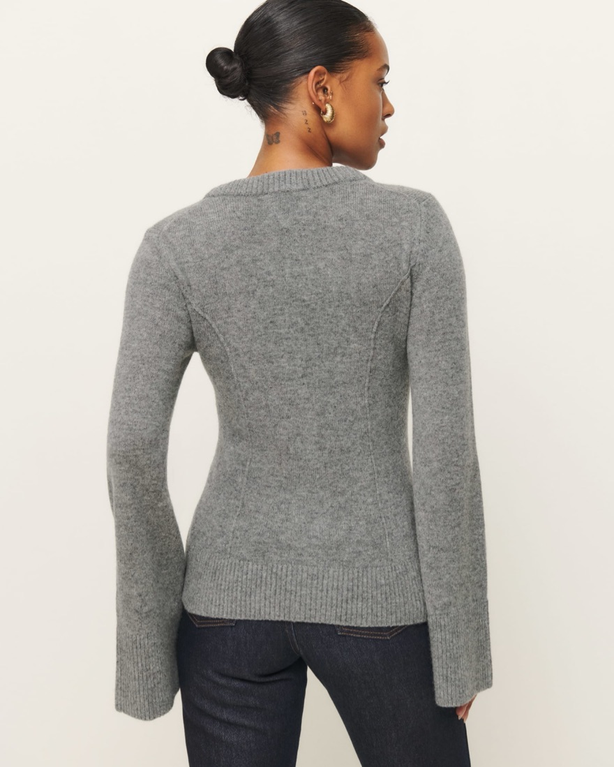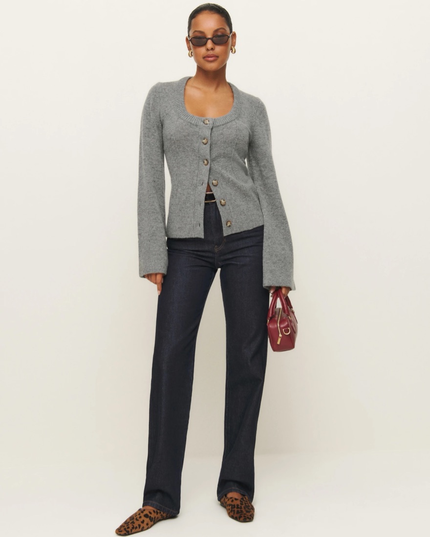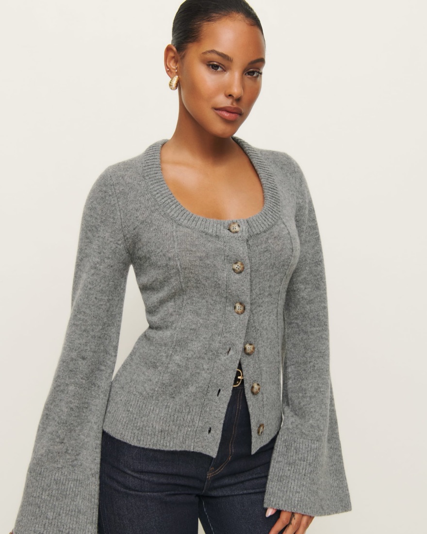 Reformation Karina Regenerative Wool Scoop Neck Cardigan in Mid Grey! size S/4 but could fit M/6 as well. made of 100% wool - brand new & in perfect condition! price includes dry-cleaning 🫶