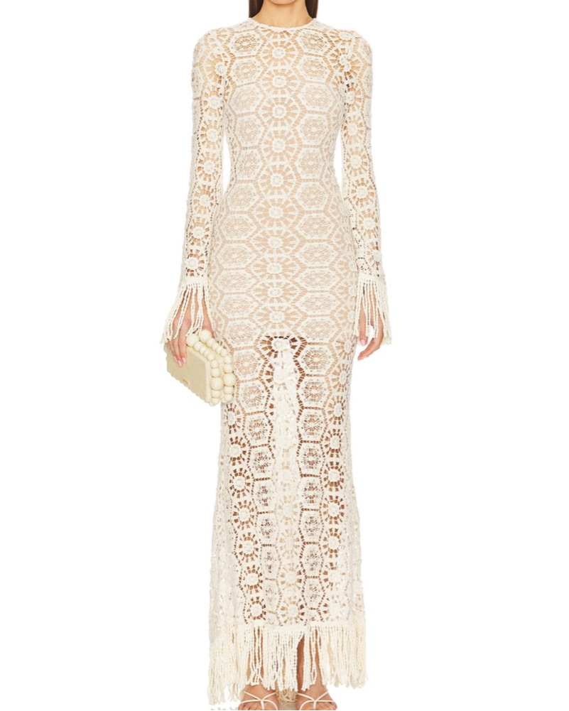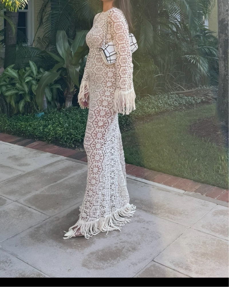 Cream gown/ dress. Beautiful for a bride or a vacation look. Delicate and comes with a slip. Size Small.