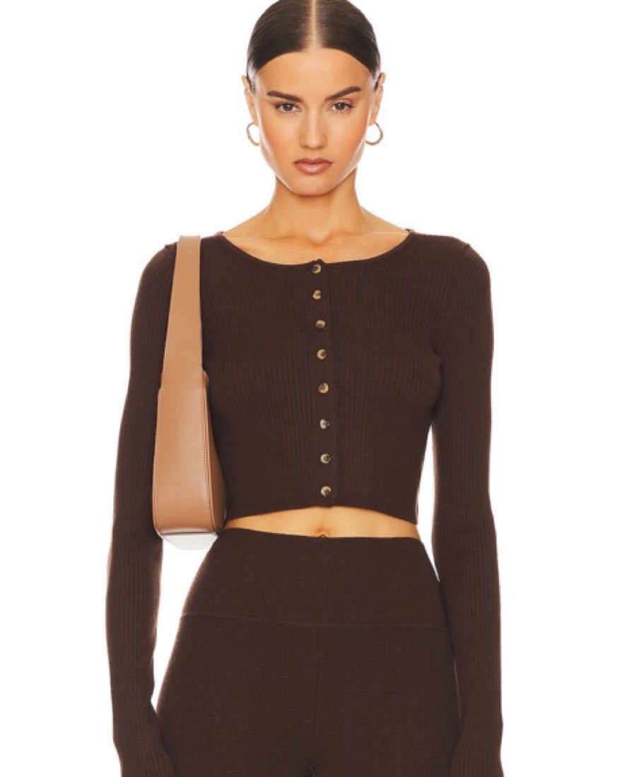MATCHING SET FROM HELSA. Can be rented or purchased separately. This stylish set features a cropped ribbed cardigan and wide-leg pants for a sleek, modern look. Pair it with heels for a night out or dress it down with sneakers for a casual daytime look.