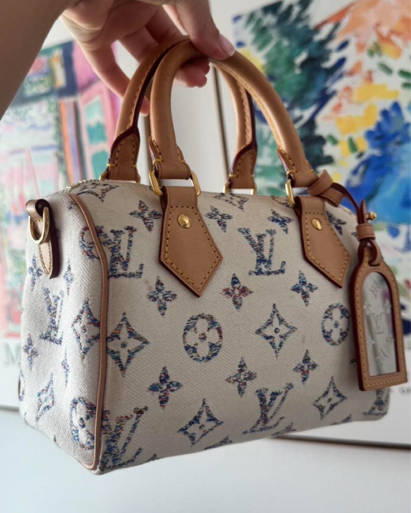 LV Speedy Bandouliere 20, fabric/denim material. Super cute, authentic of course 🧚🏽 willing to sell bc I have way too many speedy’s lol