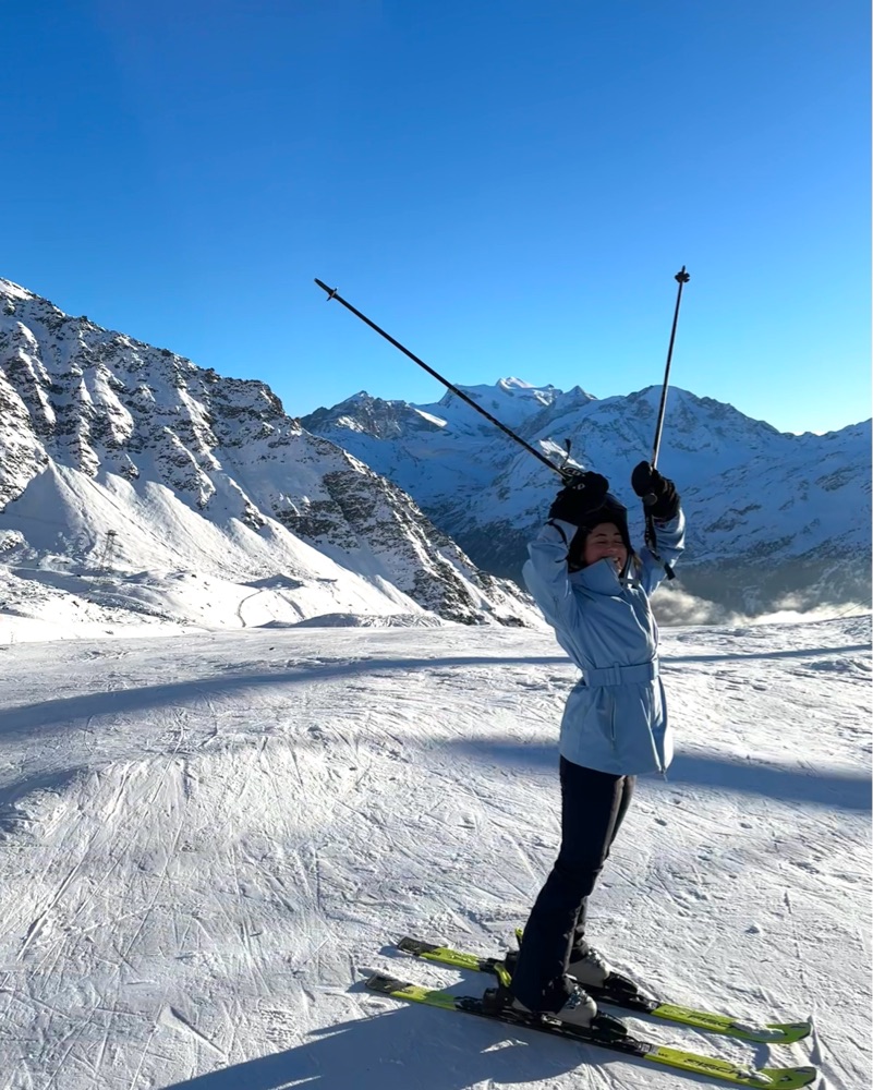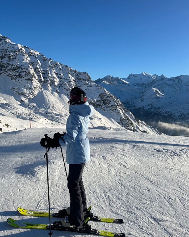 belted ski jacket in “forget me not” blue, size XS. Worn a couple of times