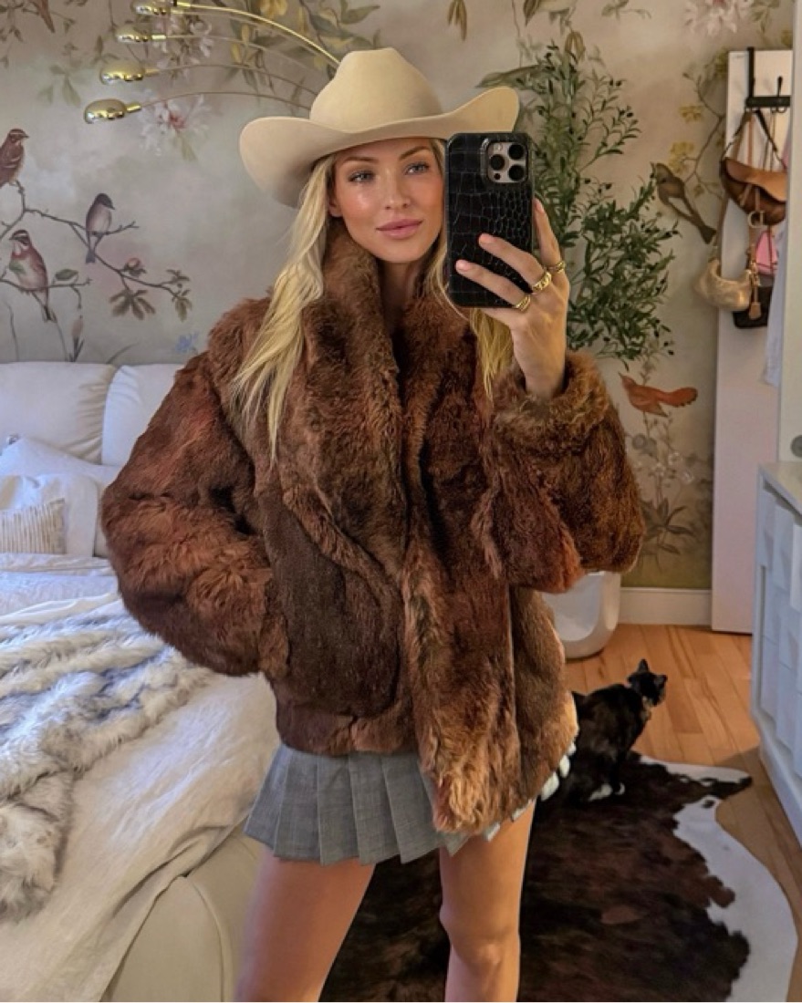 RABBIT FUR BROWN/PINK COAT by Vintage - Pickle