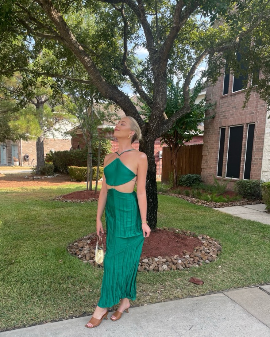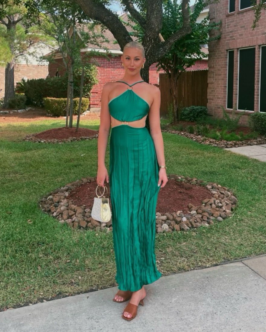 BAOBAB Emerald Green Satin Cutout Dress by Baobab - Pickle