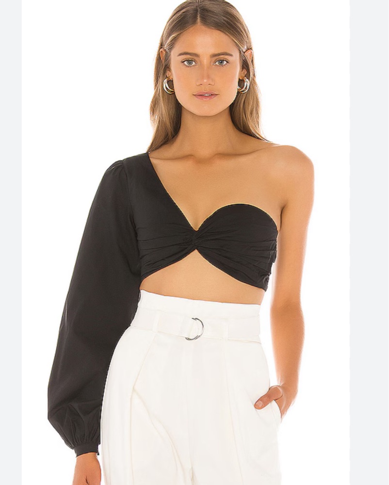 Sleek One-Shoulder Crop Top by Lovers & Friends - Pickle