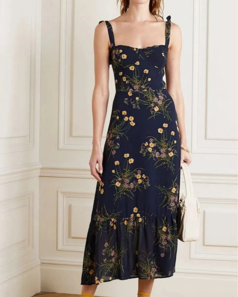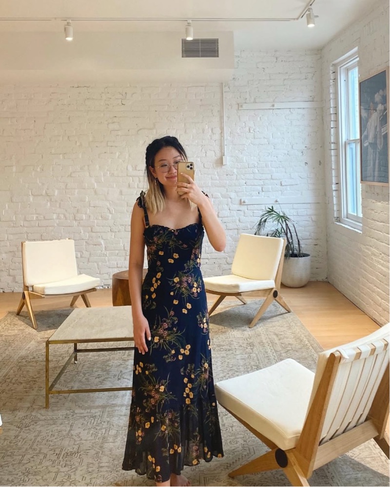 really flattering midi dress with adjustable tie straps!! perfect to wear to a wedding :)