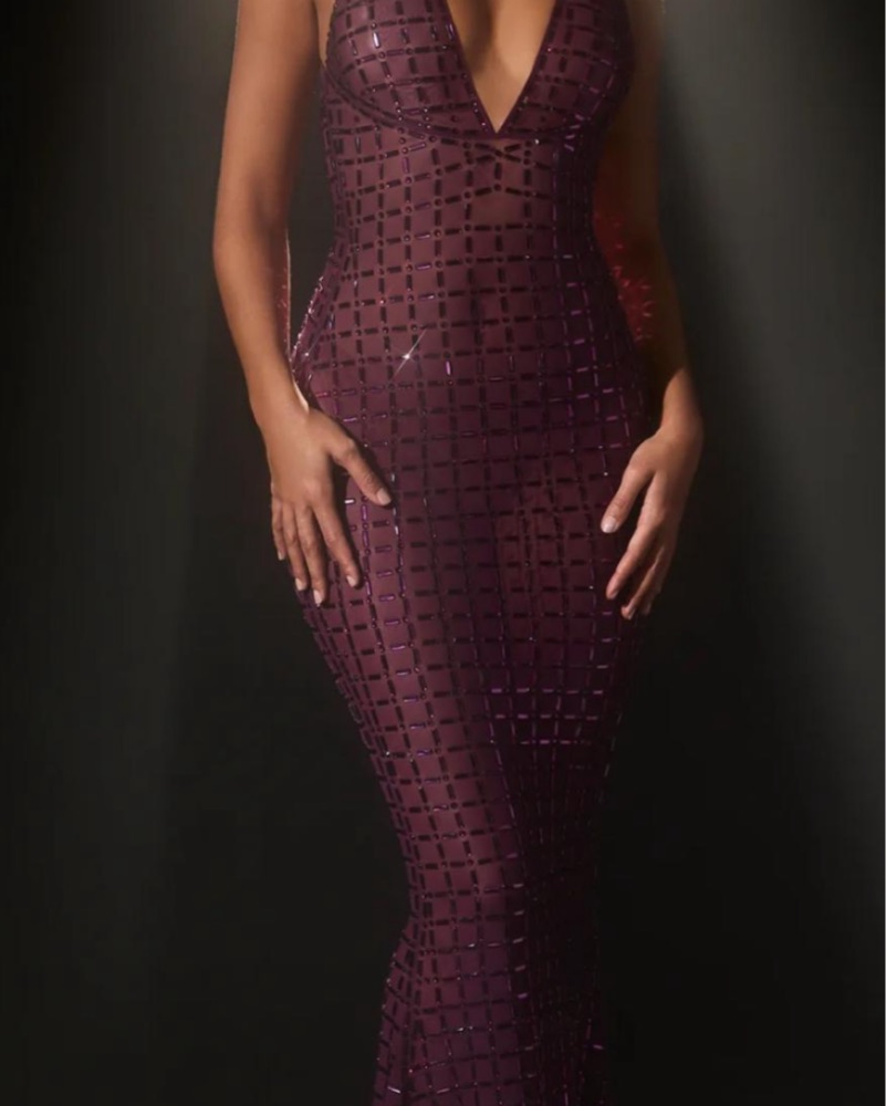 Beautiful heavy embellished dress see through size 6