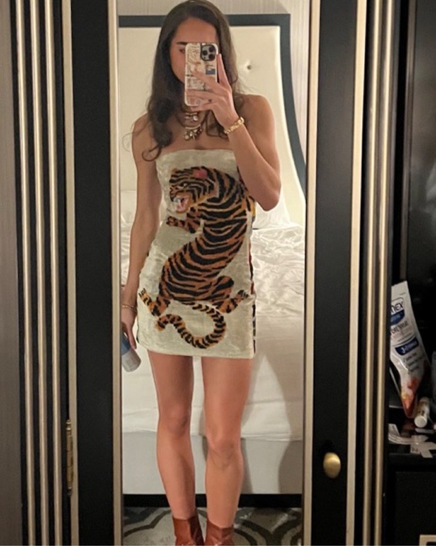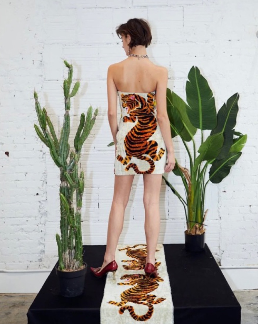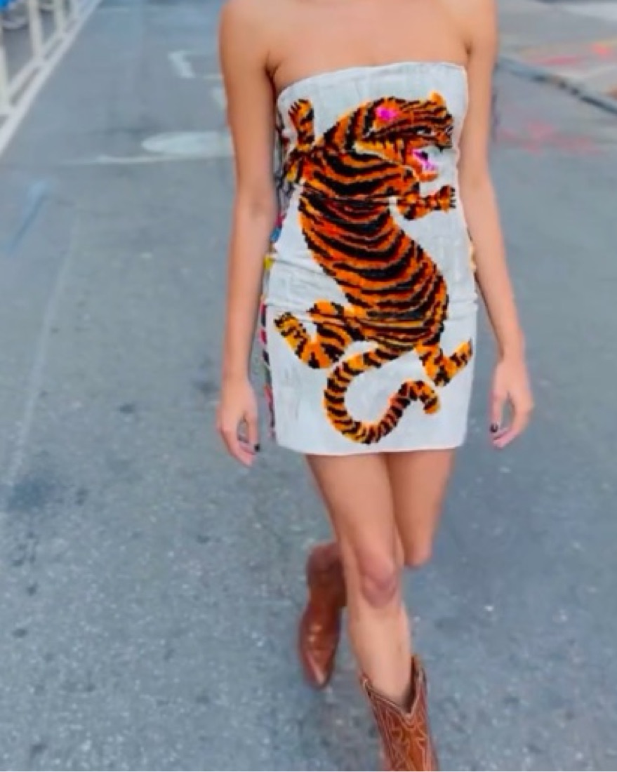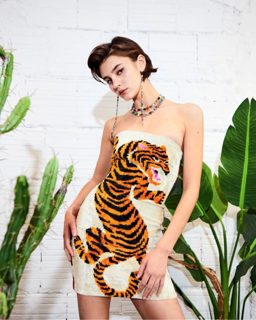 This dress was designed and sewn in NY and constructed from artisanal Uzbek textiles. 90% silk, 10% cotton. body skinning and floats away at the hem ever so slightly. incorporated with boning for chest support. So so so flattering and comfy