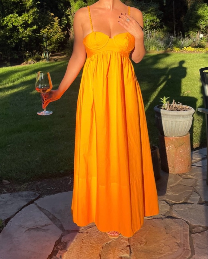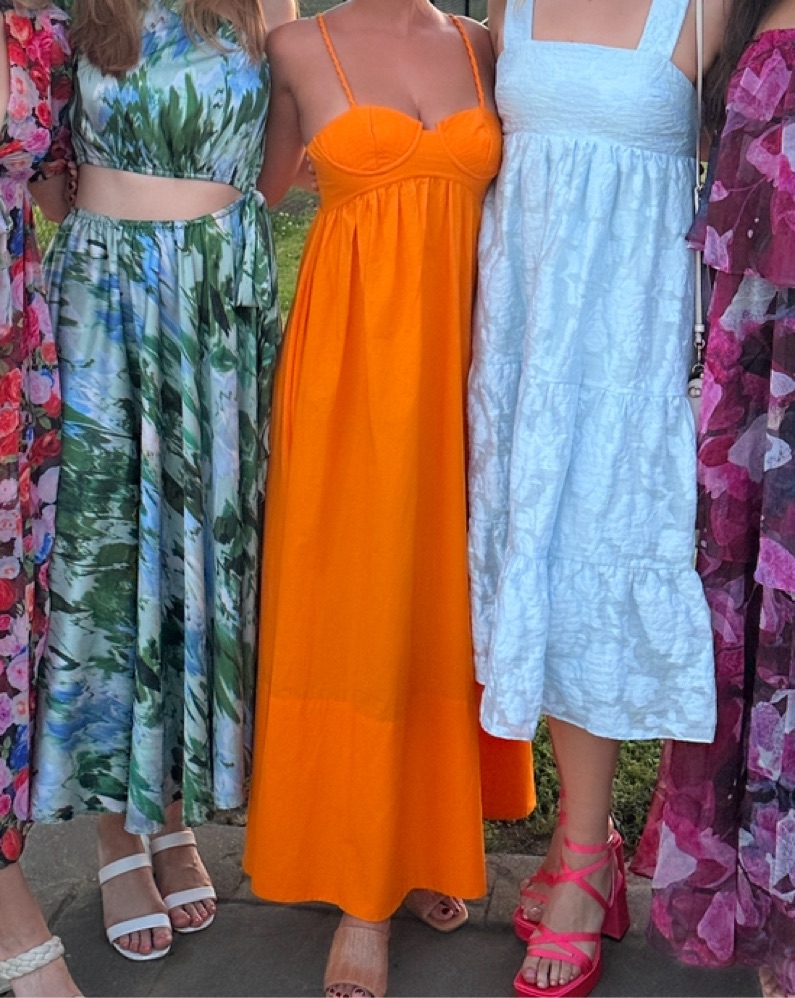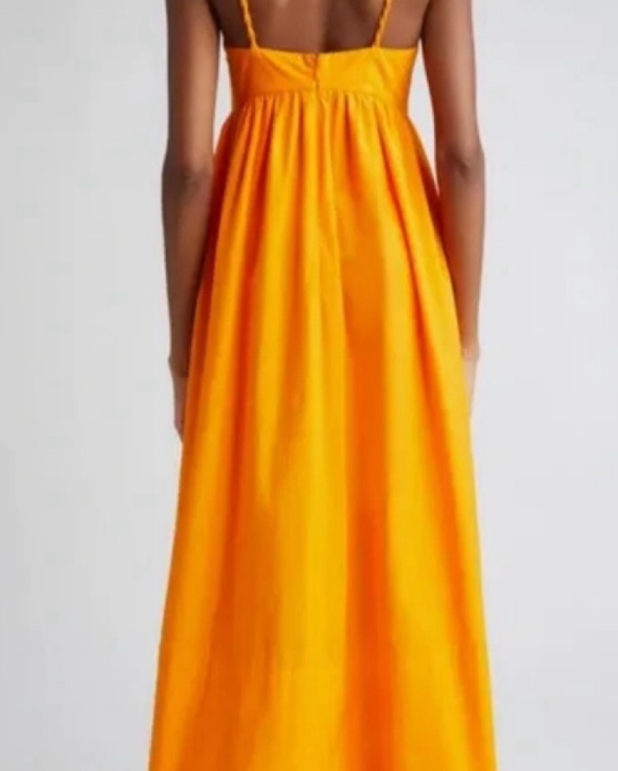 Orange yellow cotton maxi fron Farm Rio. Cute for a rehearsal dinner or warm weather vacation!
