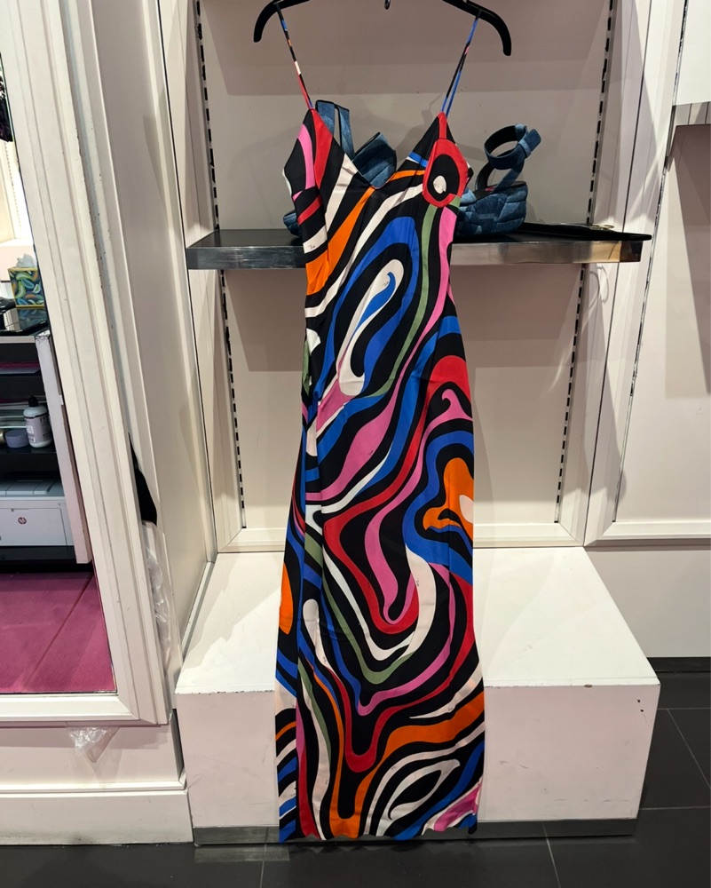 Emilio Pucci multicolor silk dress EURO Size 40- fits XS/S - new this season perfect for wedding/vacation. Please be extra careful; irreplaceable; straps altered to make dress a tad shorter