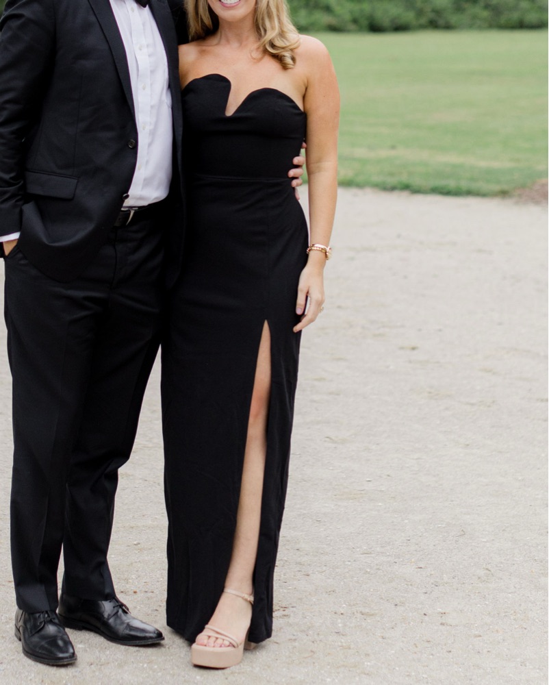 Perfect black tie dress! I am 140lb, 5’6 and size B/C chest