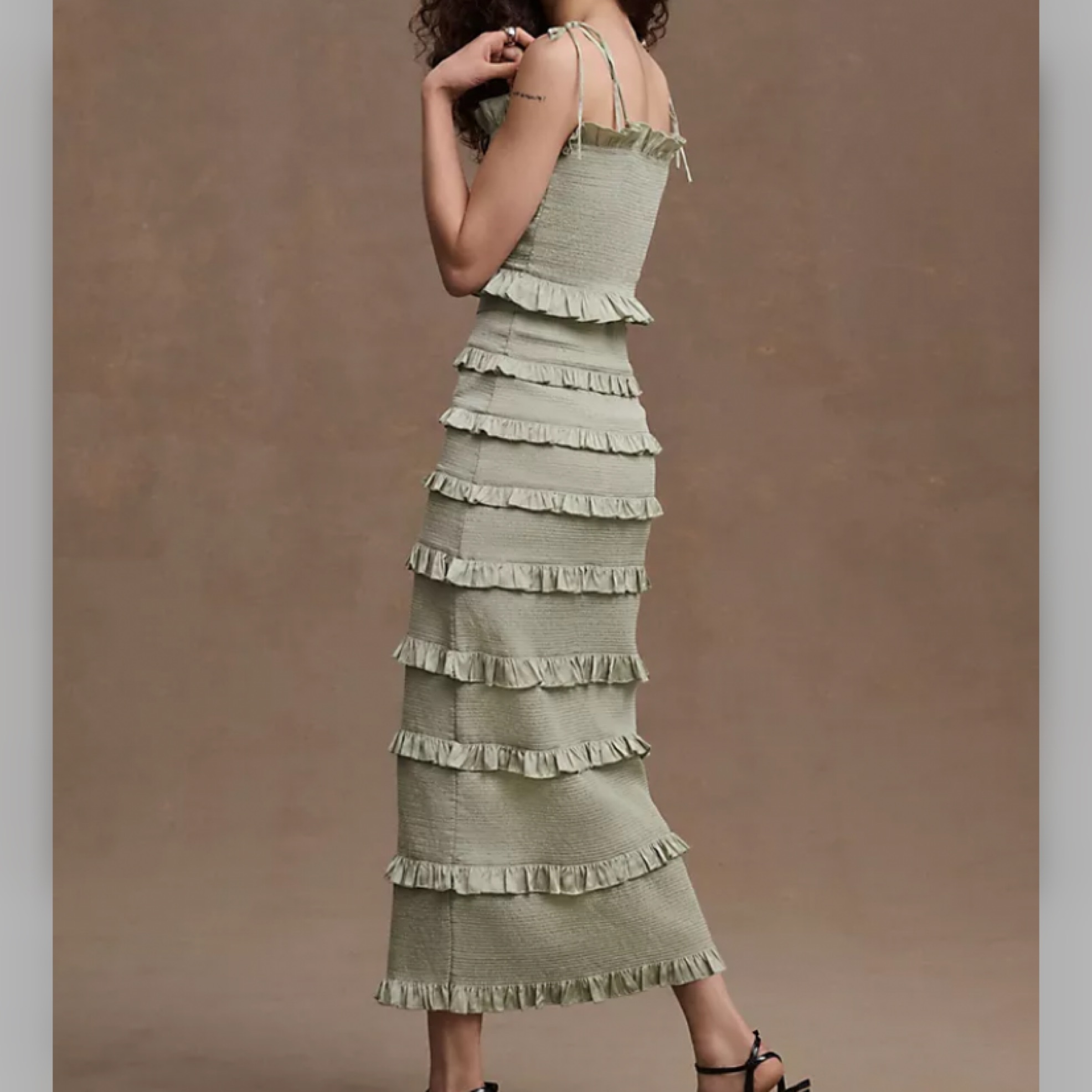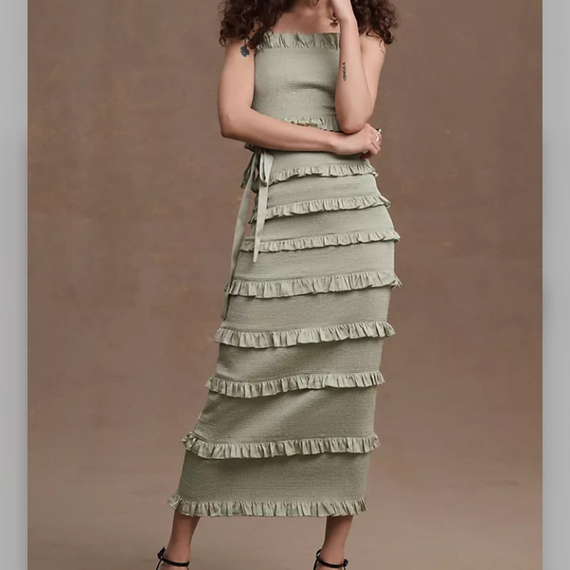 NWT! Tiered mini ruffles, soft, stretchy ruching, and a delicate satin sash make the Lily midi by V. Chapman the perfect balance of playful and sophisticated. Super comfortable & stretchy, would fit 6-10. Haven’t worn, went with a different choice for a wedding.