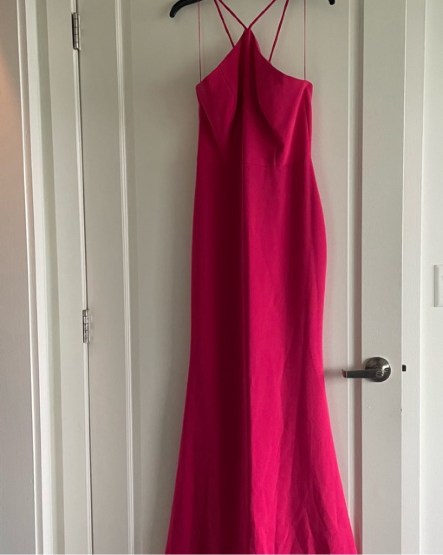 Pink floor length mermaid cut dress. Size 6, straps can be worn a few different ways. Great for a formal occasion.