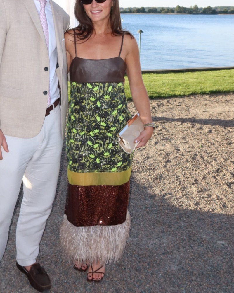 Love the different textures on this dress!! Faux leather, feathers and beads.