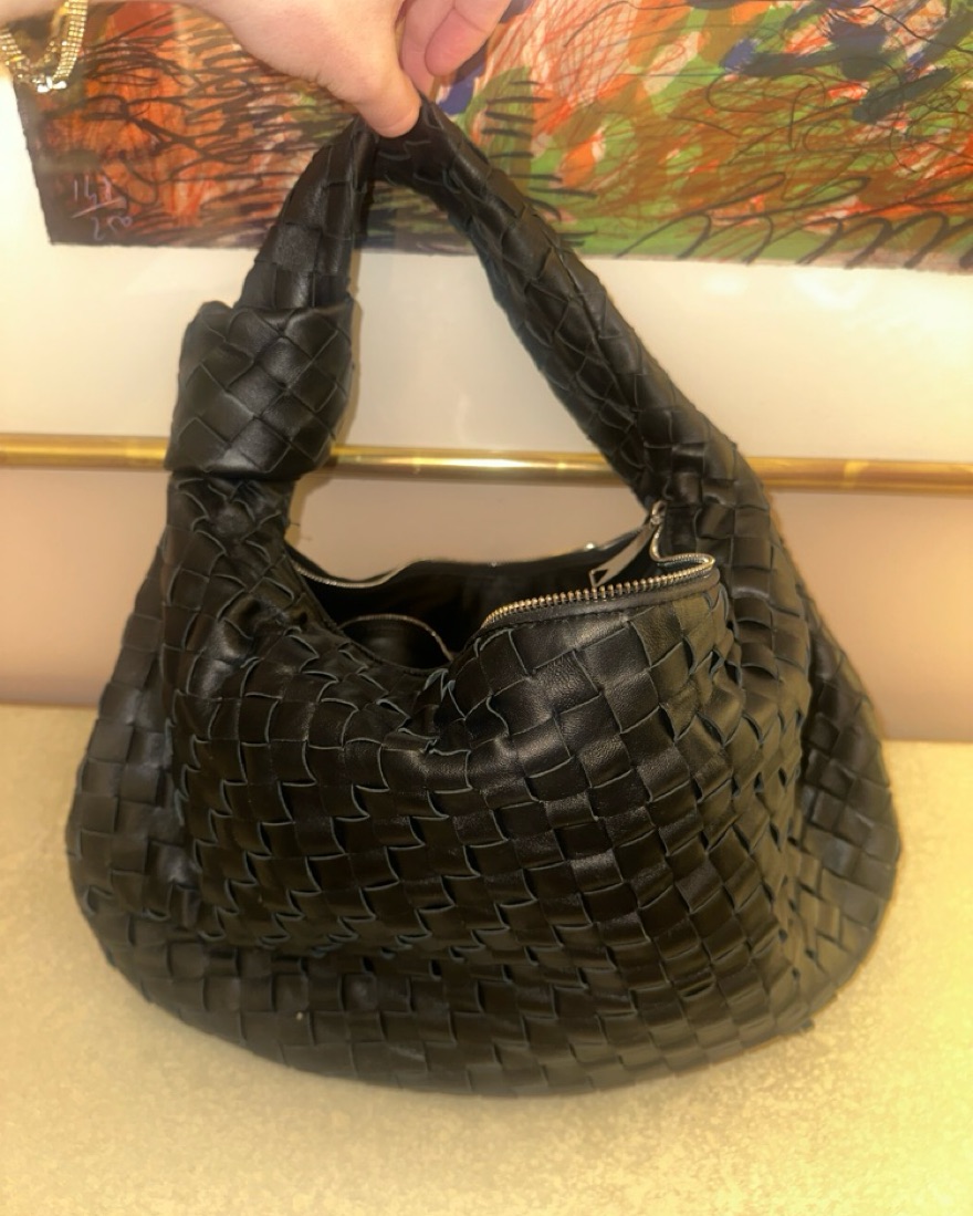 This stylish woven leather hobo bag is perfect for everyday wear or a night out. Its unique textured design adds a touch of sophistication to any outfit.