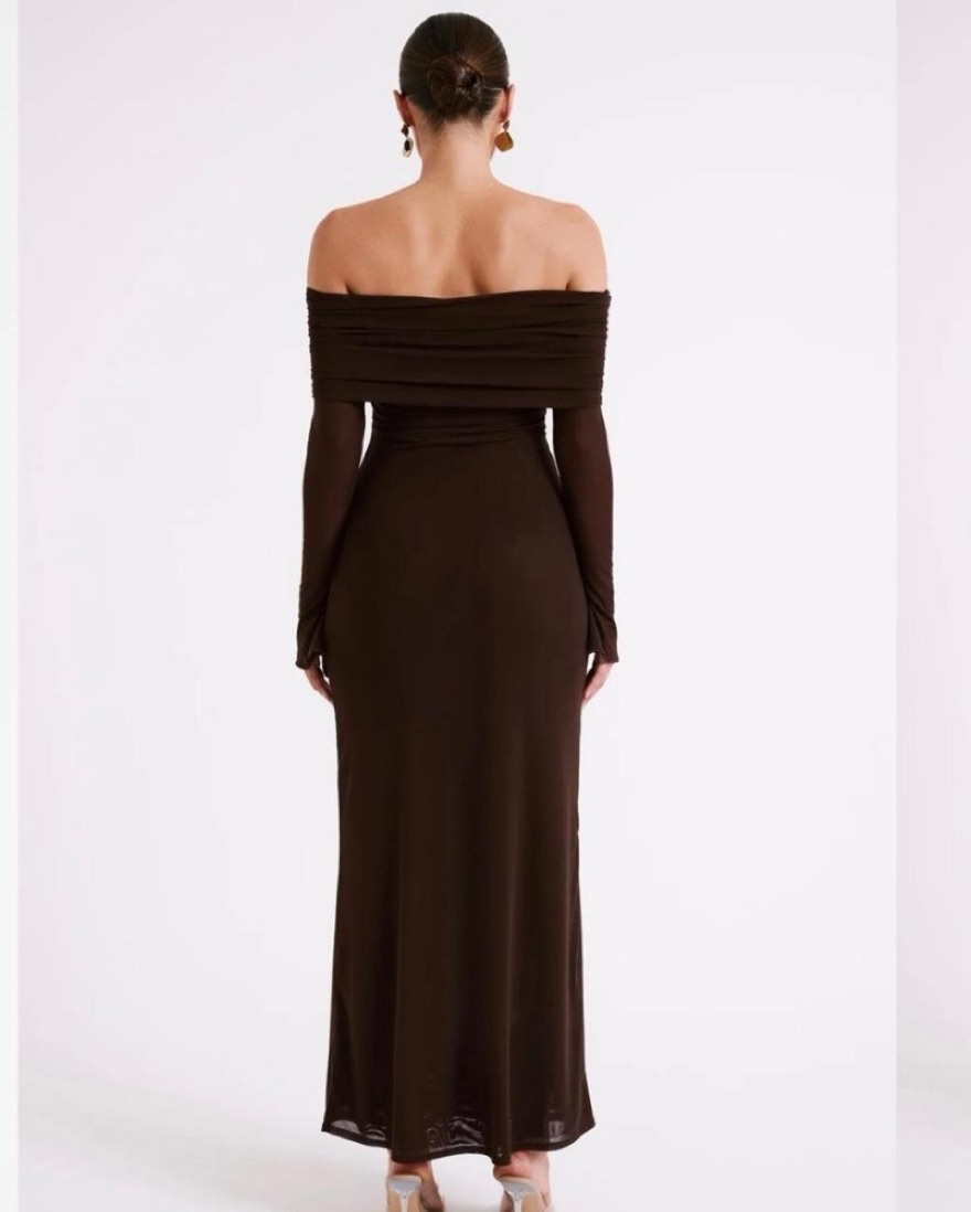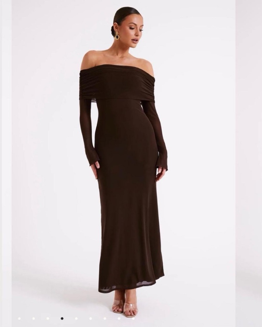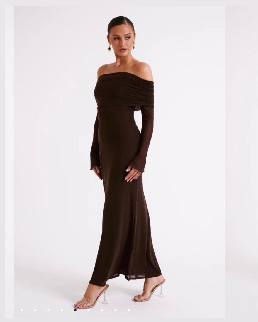 Meshki marcel off the shoulder diamante maxi dress in chocolate brown. Only worn once
