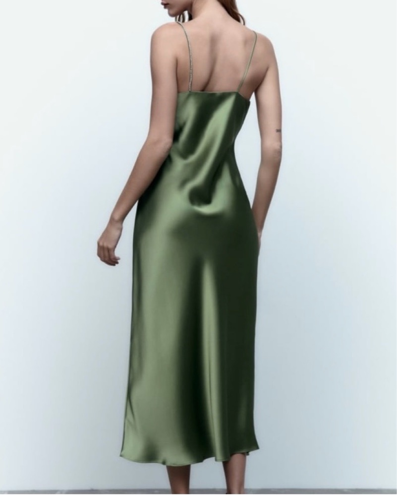 Decent condition, beautiful color especially if you have warm features. Rhinestone strap on one of the straps. Midaxi length.