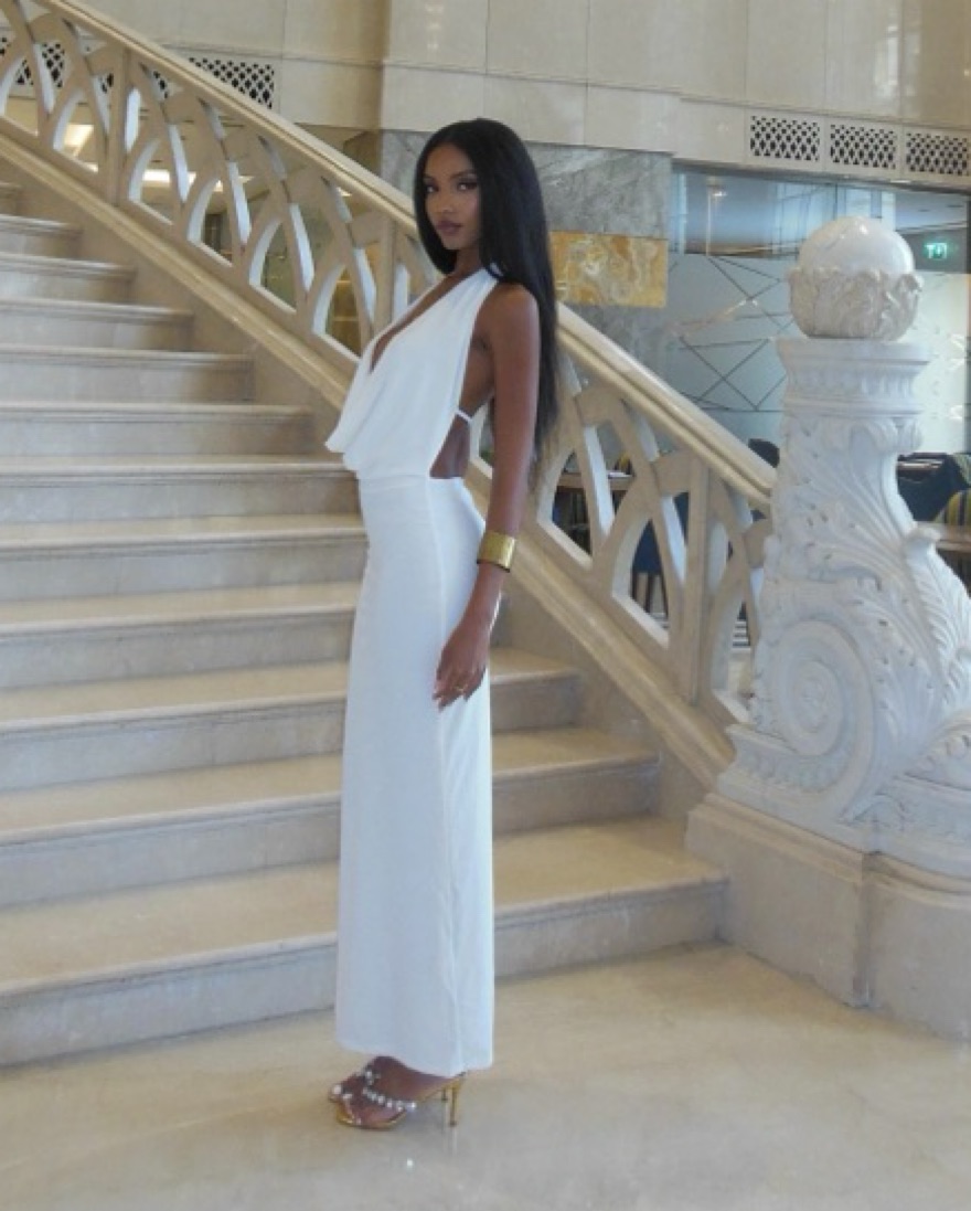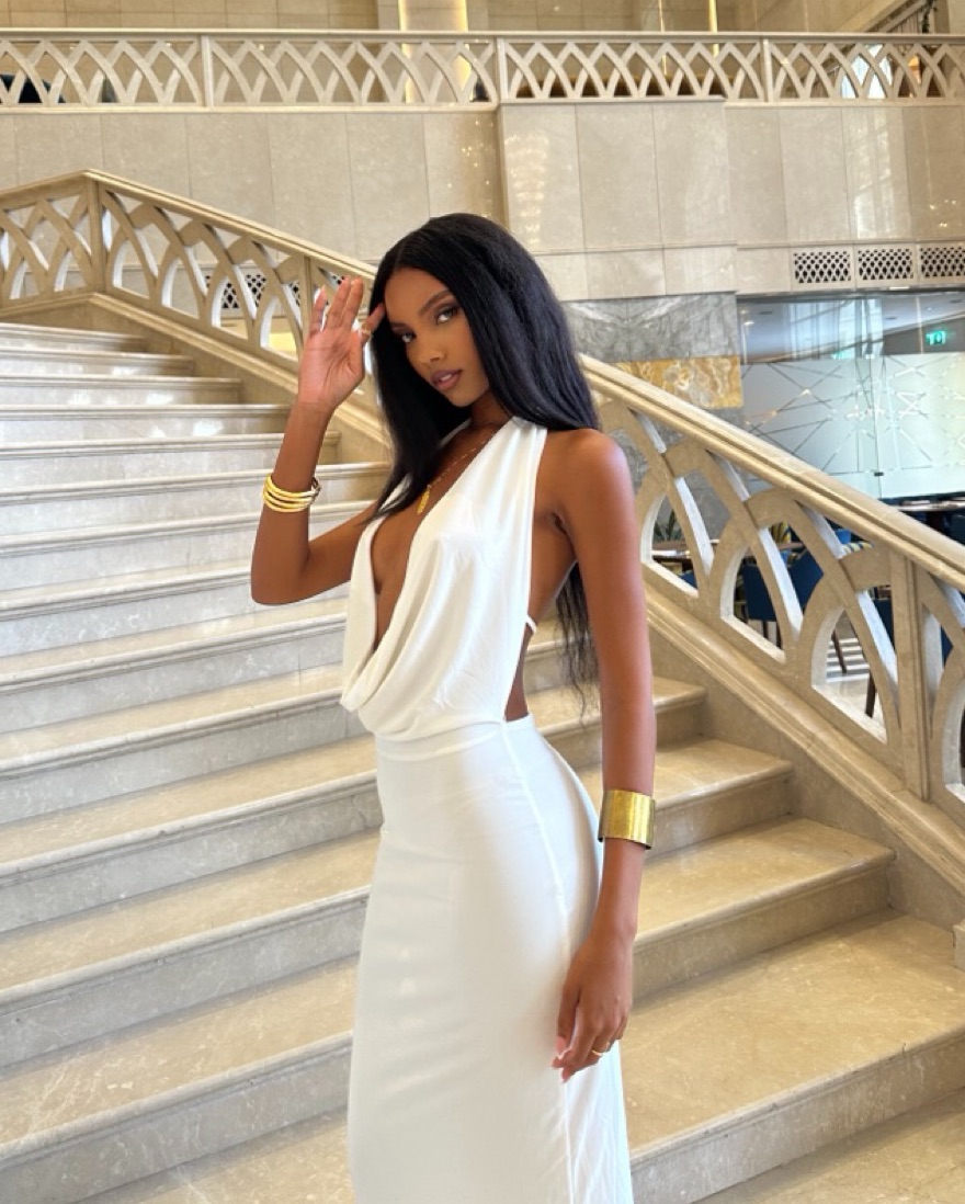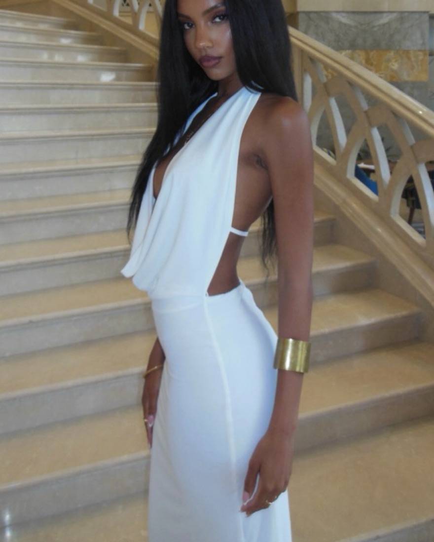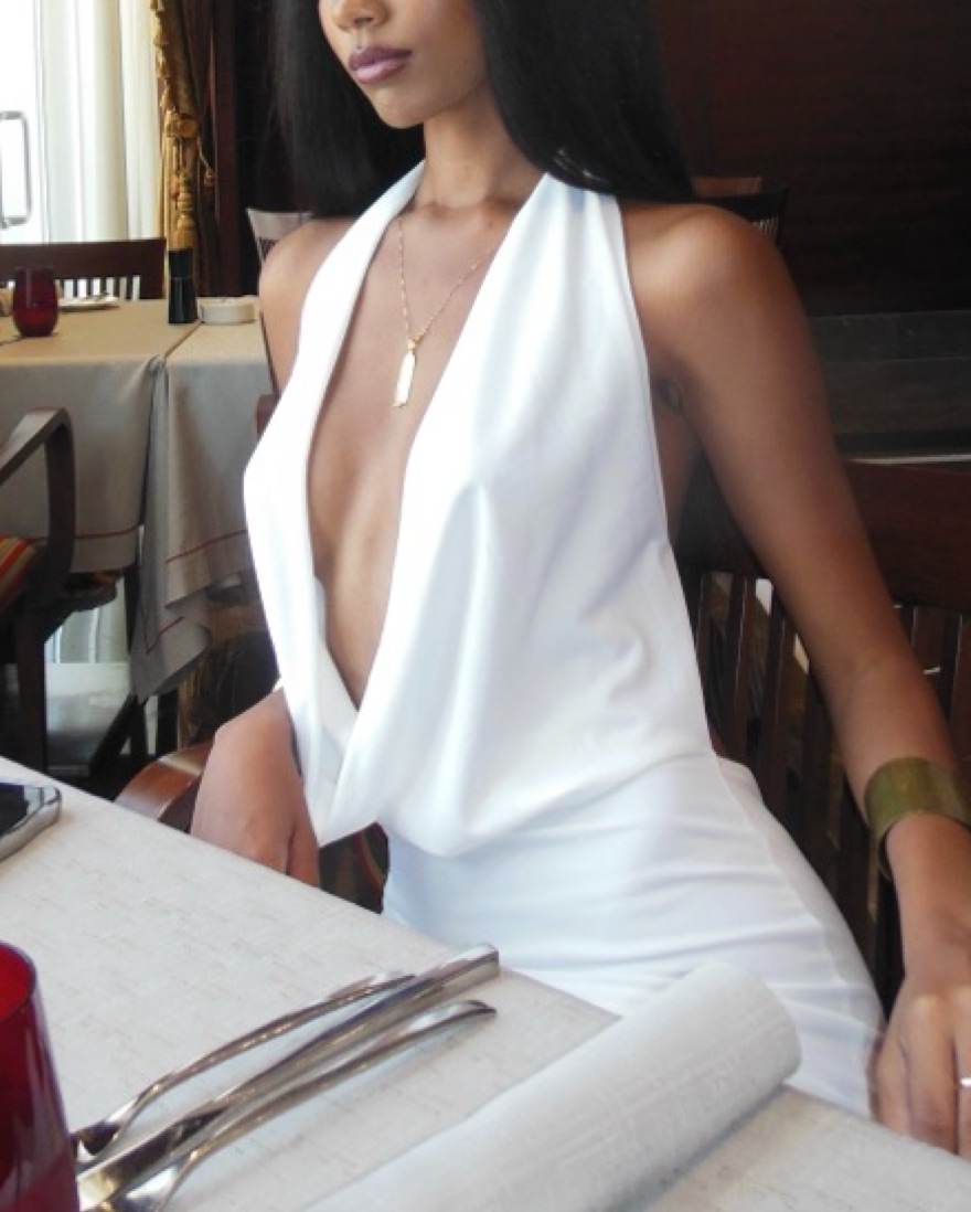 This stunning white halter maxi dress is perfect for a formal event or special occasion. The flowing silhouette and chic design make it a truly sophisticated choice.