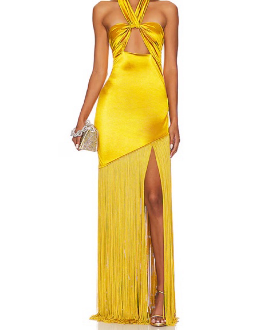 Bronx And Banco Bali Gown In Gold by Bronx And Banco - Pickle