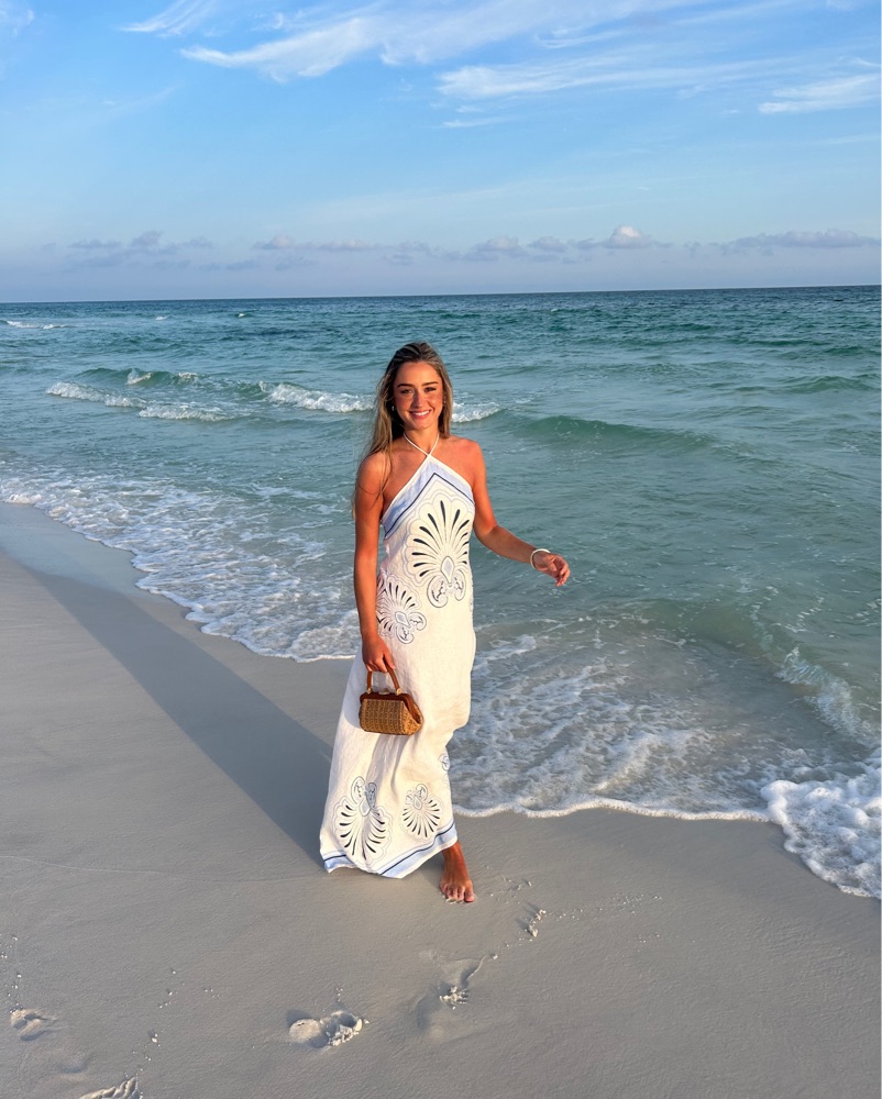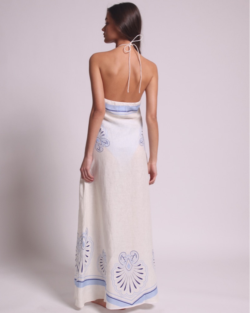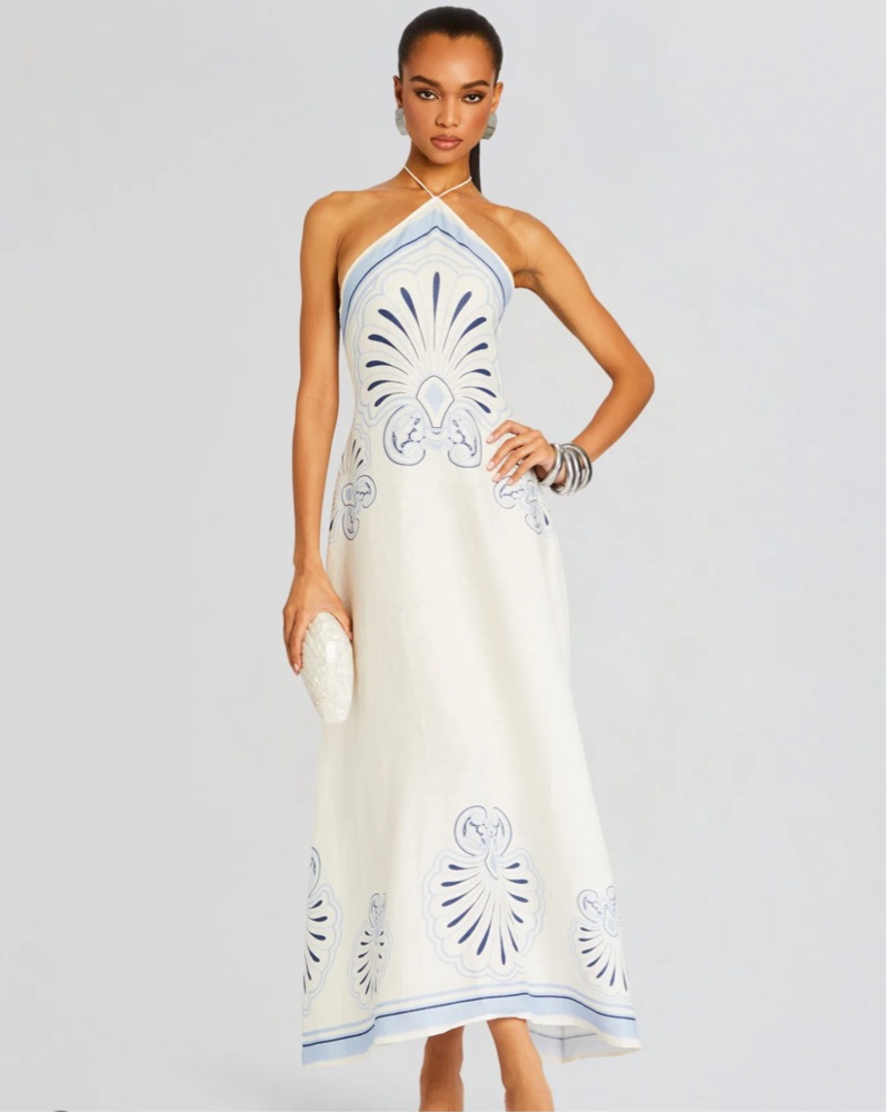 Cream and blue maxi dress. Retrofete Shani Shemer Eleanor dress in xs. Sold out online. Perfect condition, worn once. Great for vacation or the beach. Retail price $452. Can send pics of the actual dress.