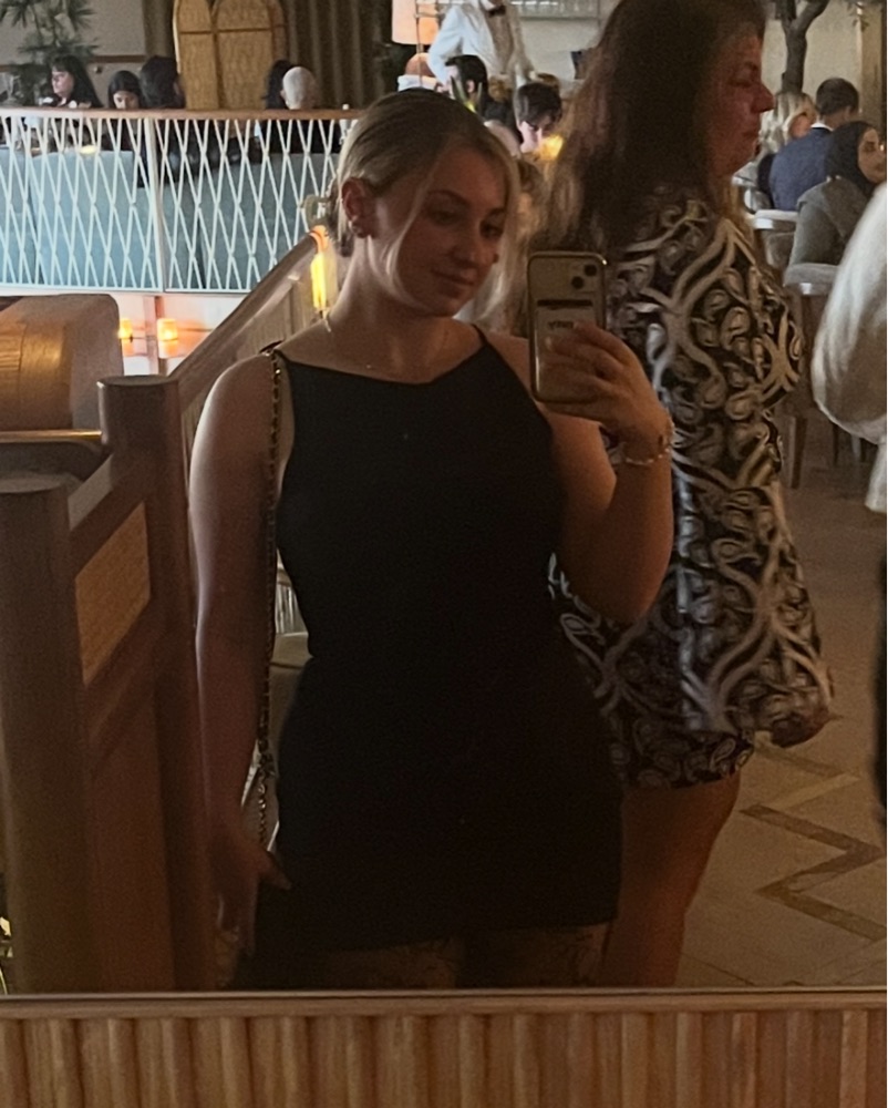 This is a lined micro dress with a boat neckline. It's cut from a structured double-layer crepe with a touch of stretch for shape retention and hold.
