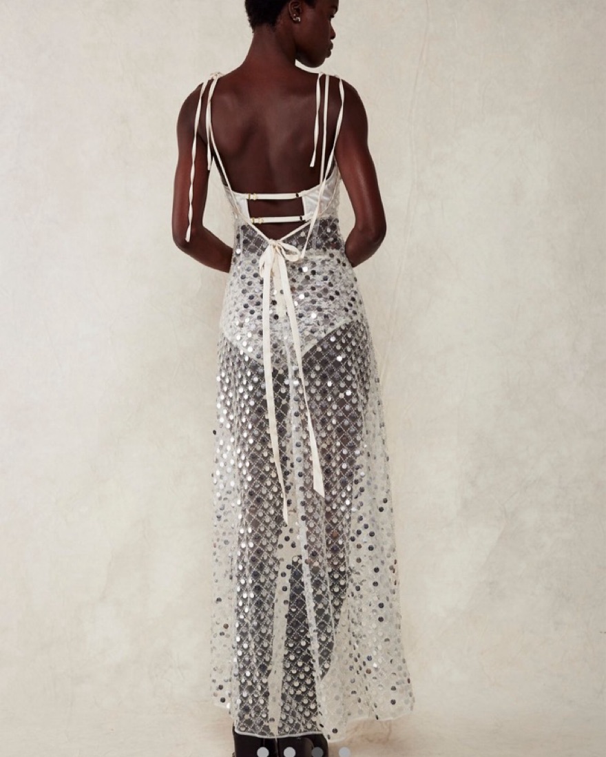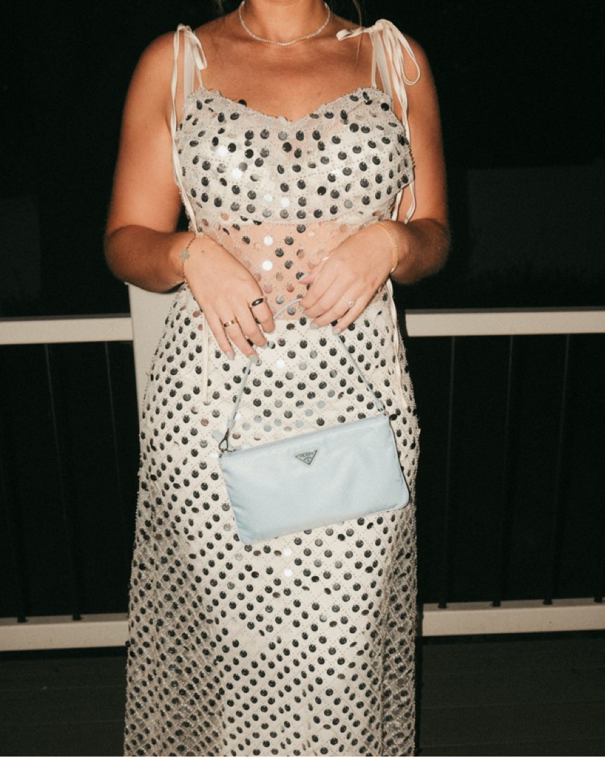 silver sequin maxi dress. does not come with under garments/slip. worn once on my bachelorette-so fun!