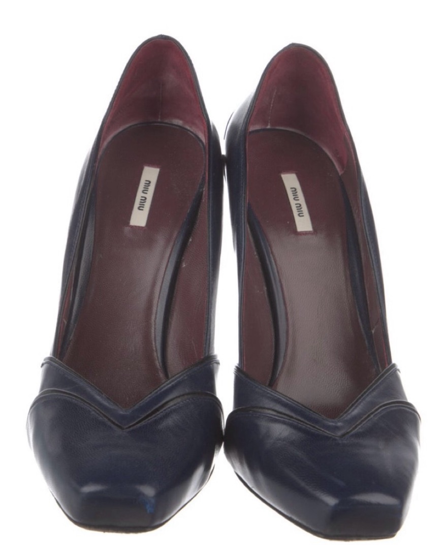 Navy blue Miu Miu (second brand of Prada) original pumps, in great condition. Very unique shape, love the sculptured heel. The size is 8 and it fits like a proper 8.