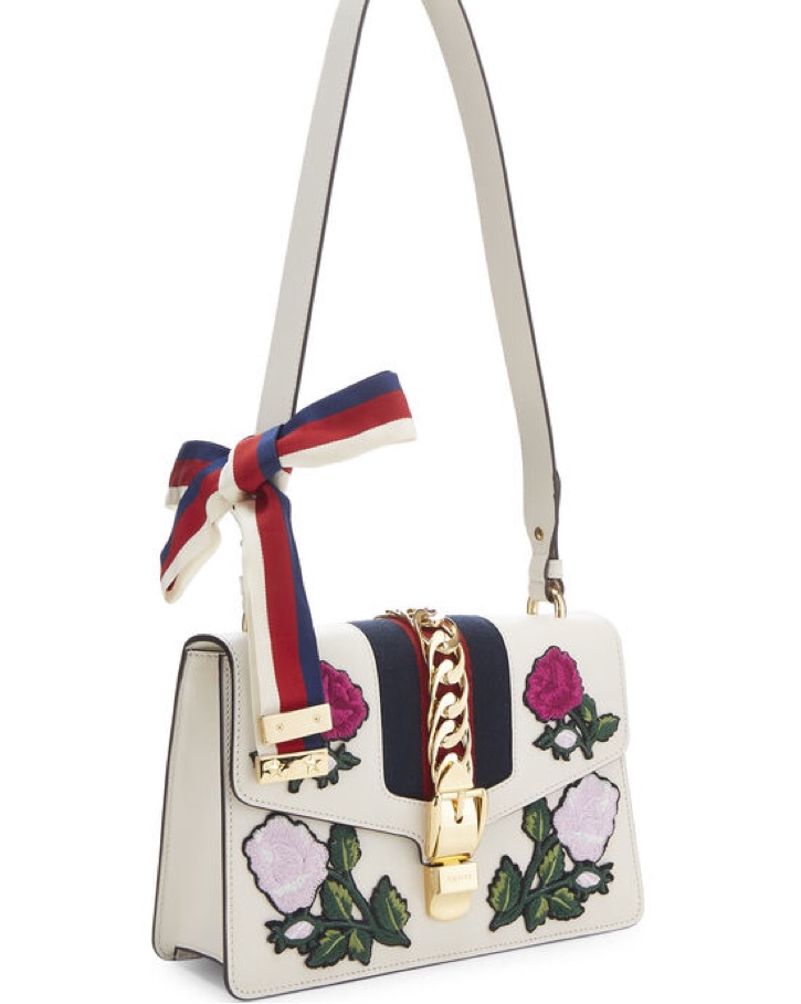 Gucci White Floral Embroidered Bag