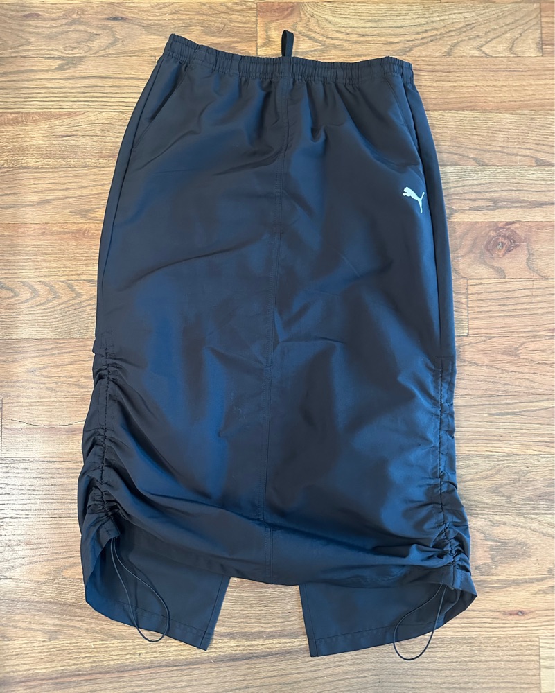 For the sporty girls is the Puma Black Midi Skirt in like new condition. The drawstring waistband and lightweight fabric provide a flattering and functional fit.