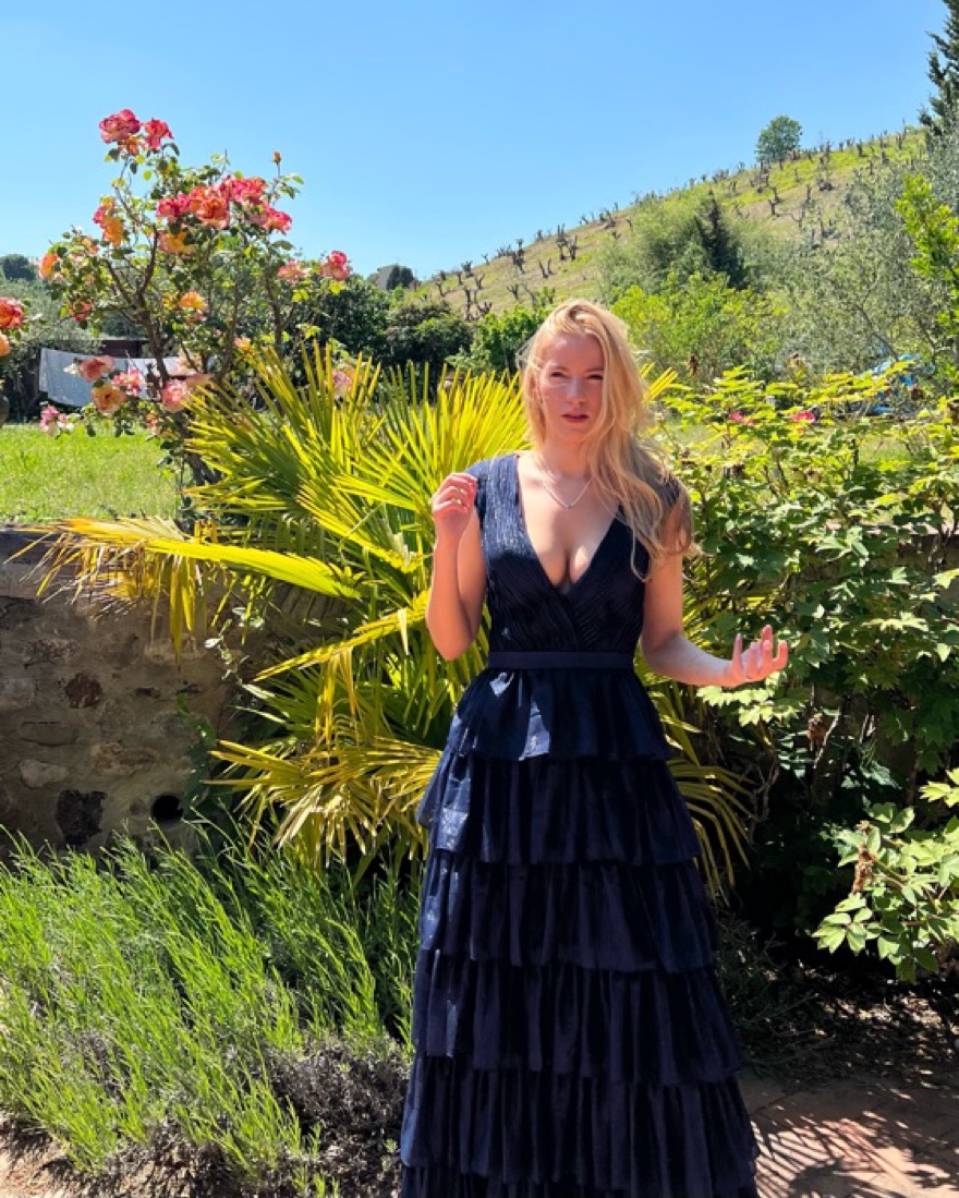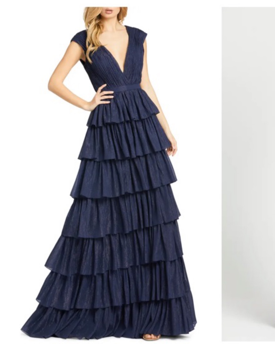 Mac Duggal Ruffle Tiered Navy Gown by Mac duggal - Pickle