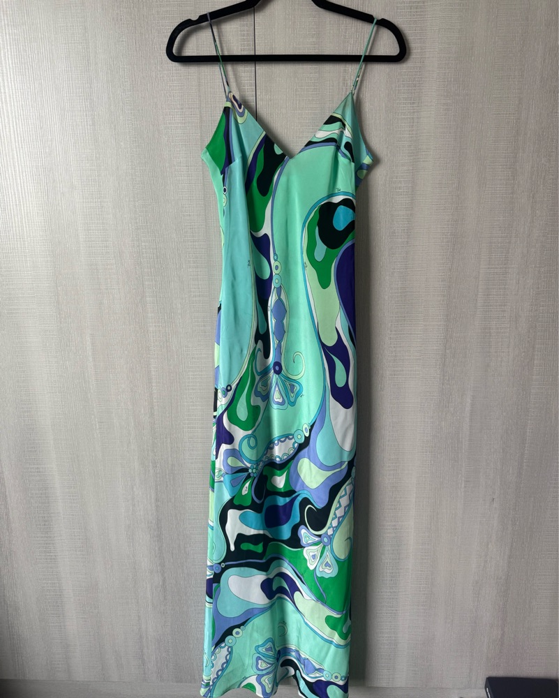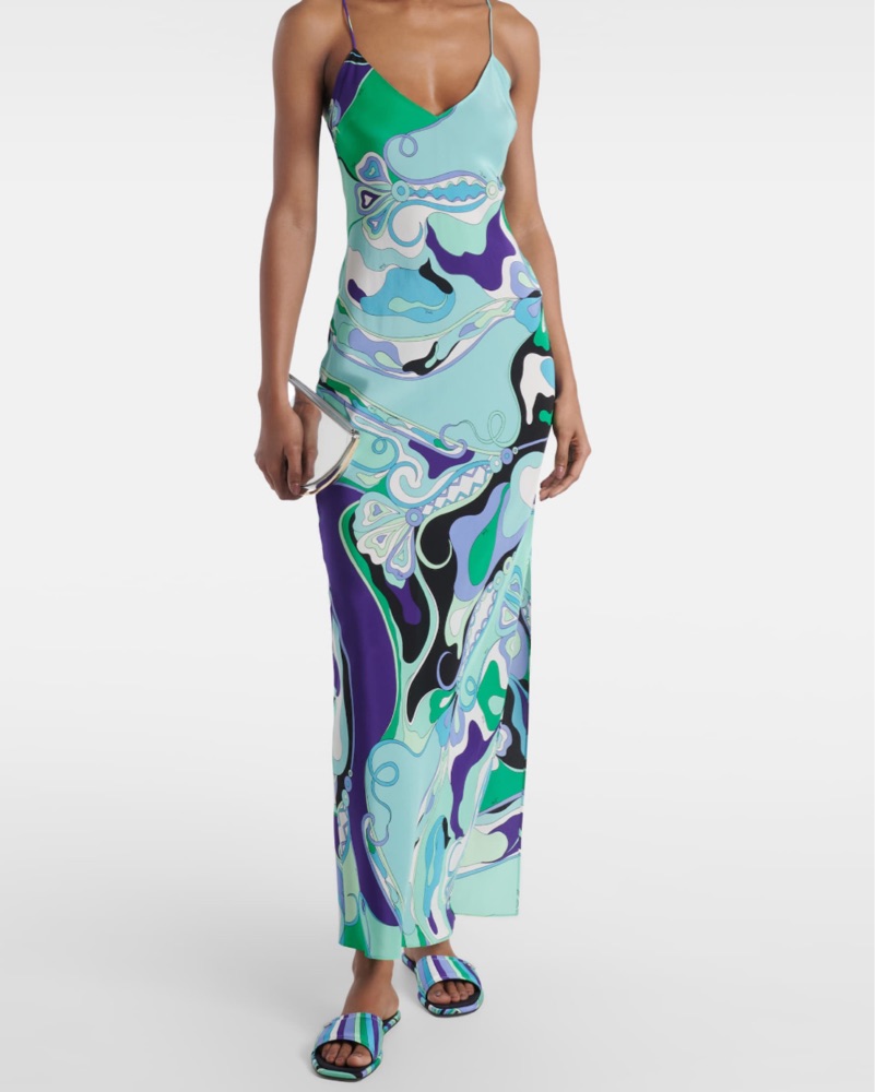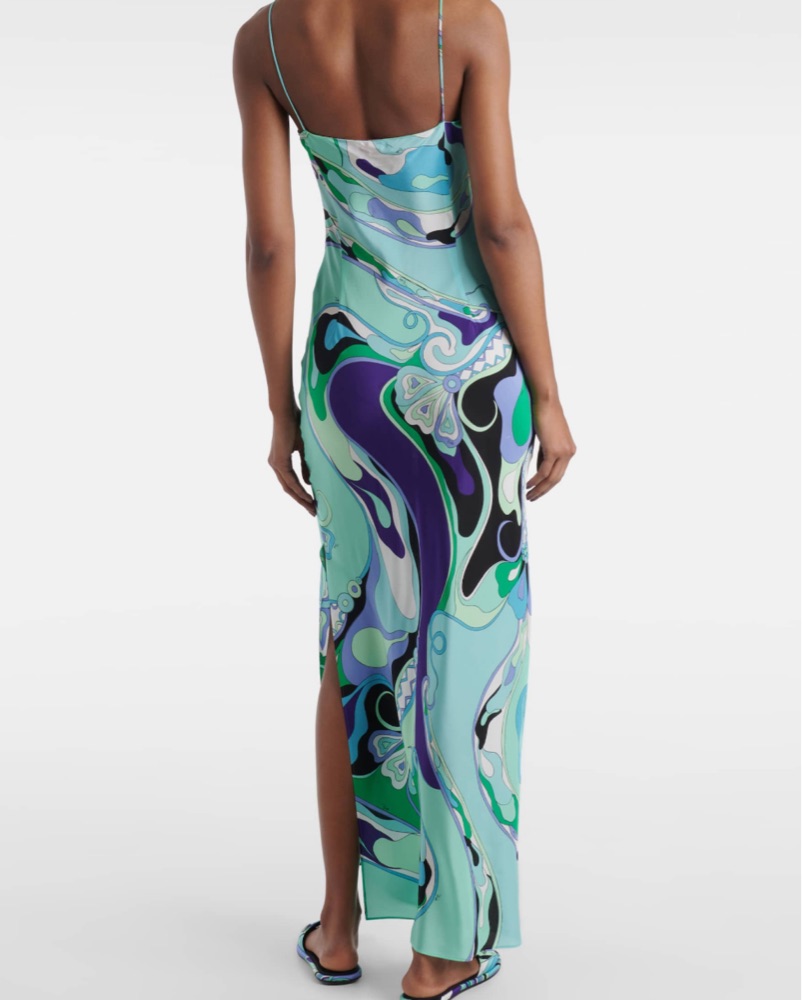 The iconic psychedelic swirling motif is a brand signature, which earned Pucci the title "Prince of Prints." The Orchidee silk slip dress is made in Italy and showcases the vibrant print in a flowing design for an elegant look.