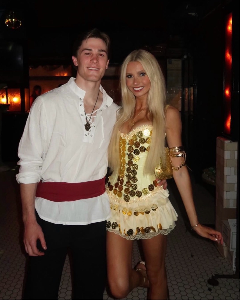Gold coin treasure chest costume for Halloween or Gasparilla! Size can corset and small skirt