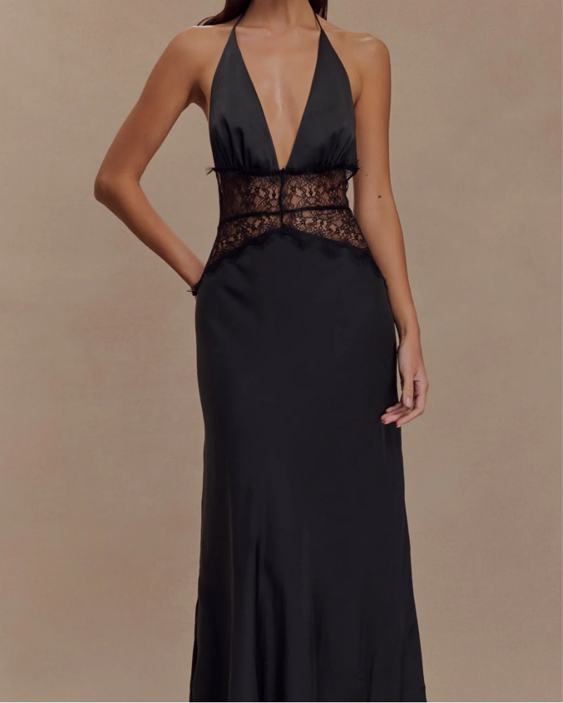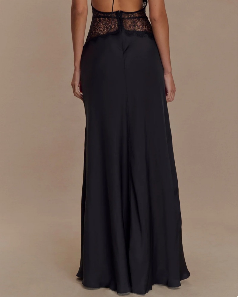 Dinah Lace And Satin Maxi Dress - Black by Meshki - Pickle