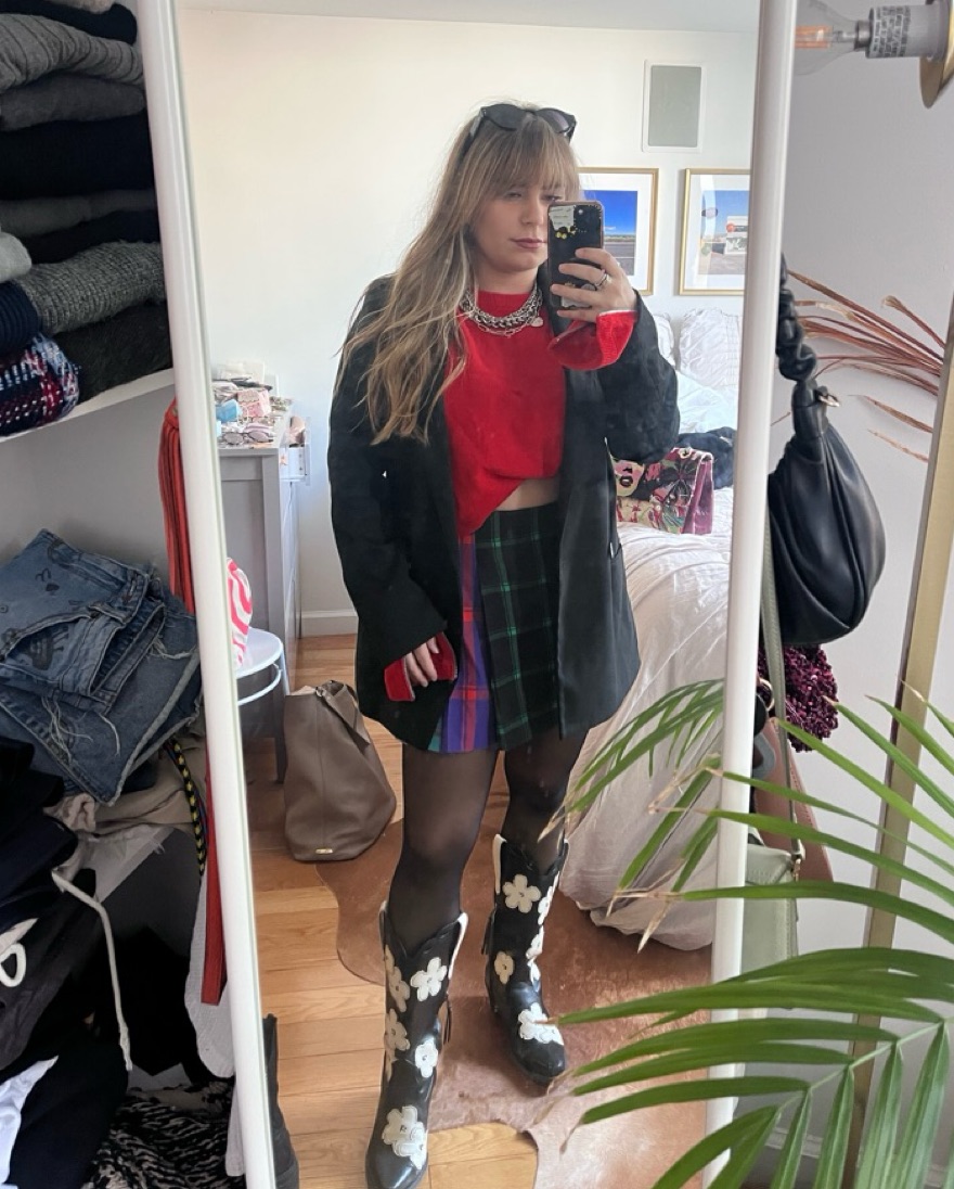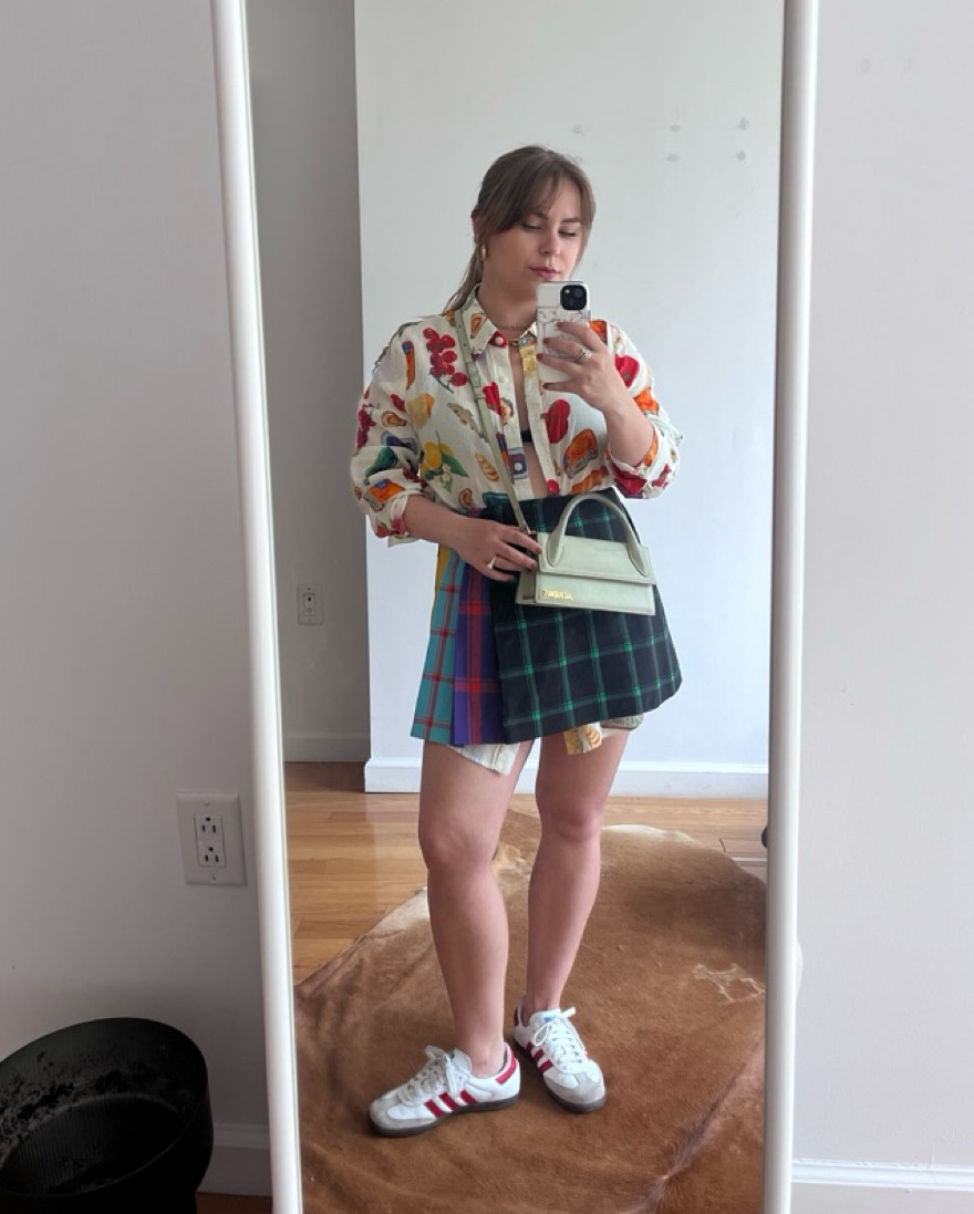 Multi-plaid mini skirt with back zipper