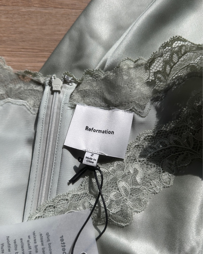 Reformation Sage satin gown