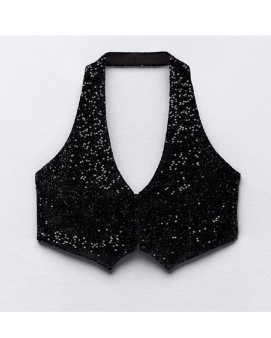 Zara Sparkling Black Sequin Crop Top