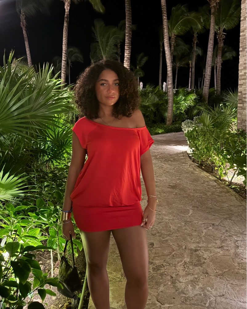 Perfect dress for summer vacay! The dress is labeled cherry red but in person it looks a bit more in between orange and red but still so cute!!