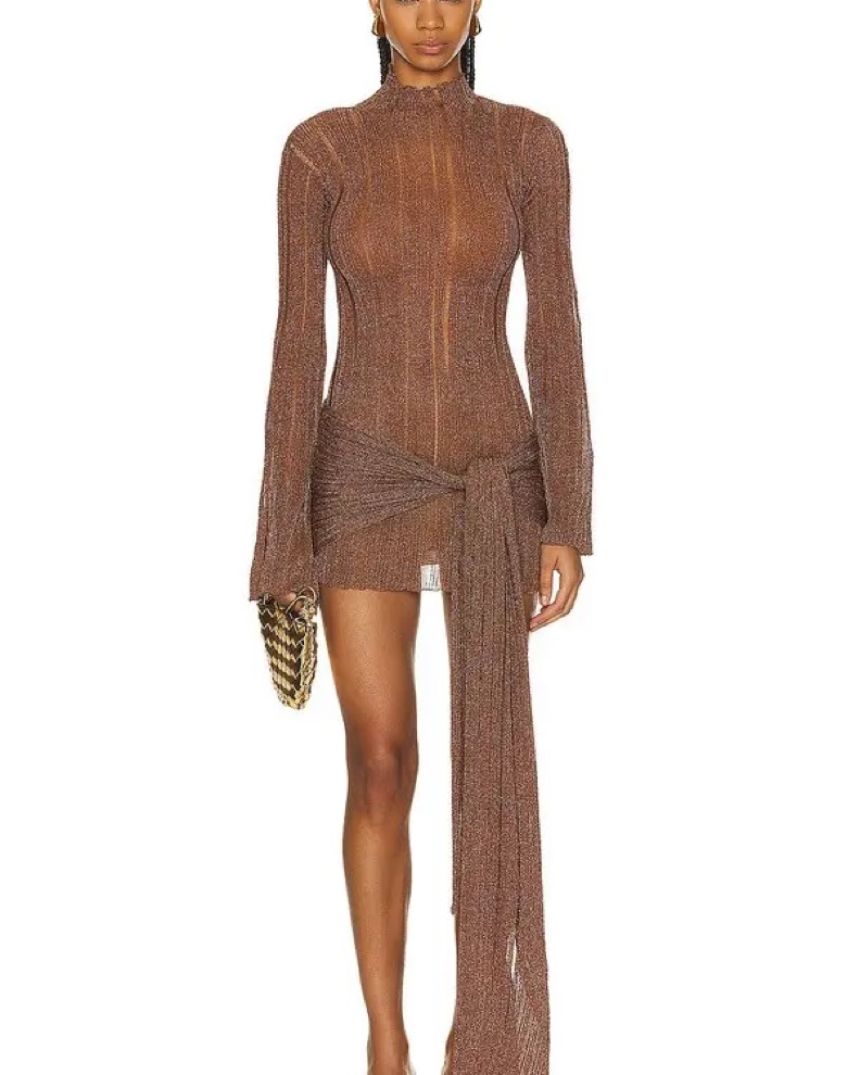 GORGEOUS Aya Muse Naku mini wrap dress in a sparkly brown, as seen on EmRata! Fits sizes xs or s. The fabric is fragile, would advise to avoid rhinestone bags or accessories with this piece and to be careful around rough surfaces as it may pull and damage the material