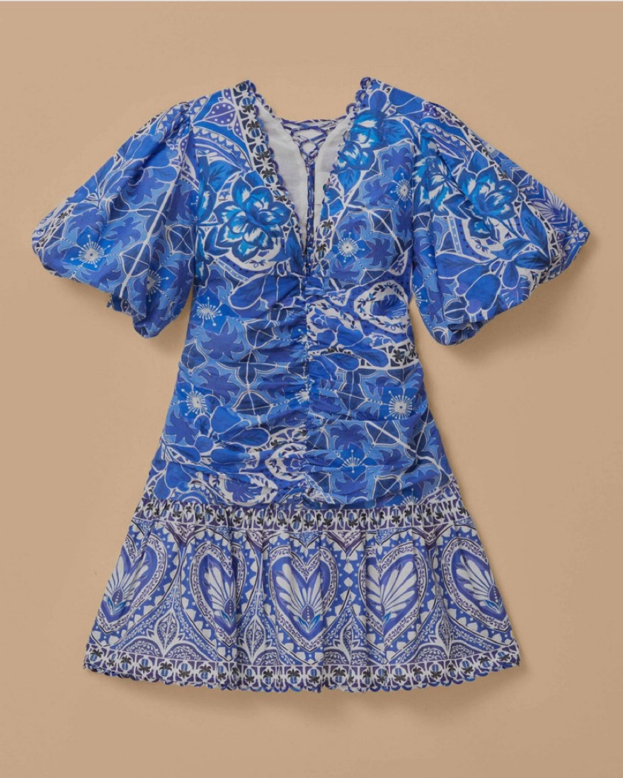 Farm Rio Blue Tile Print Short Sleeve Mini Dress - worn once! Fully lined but very lightweight and comfy.