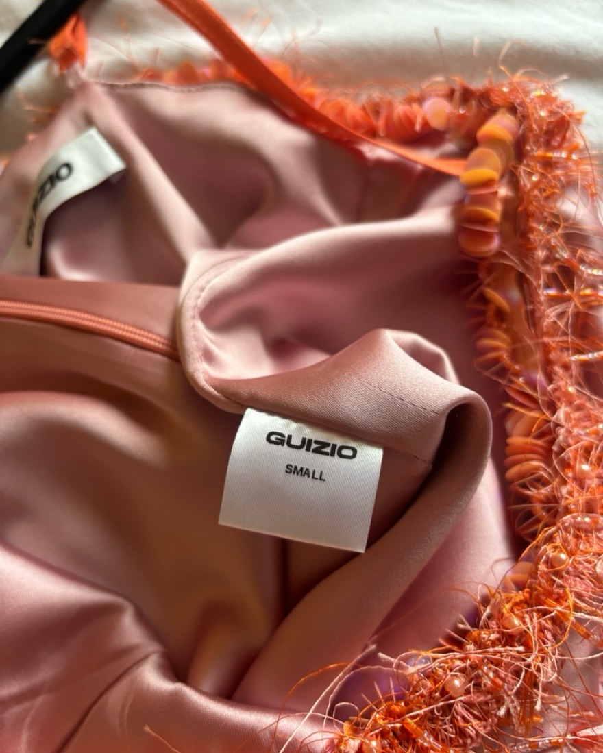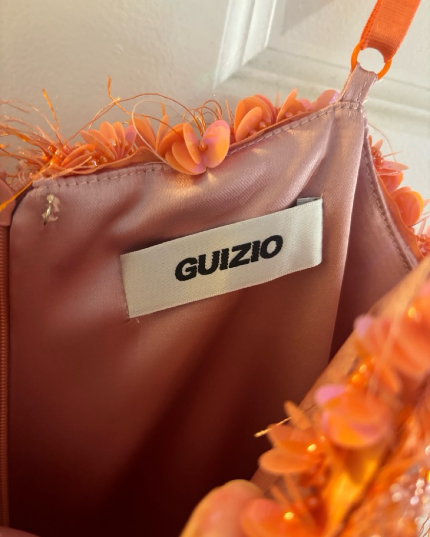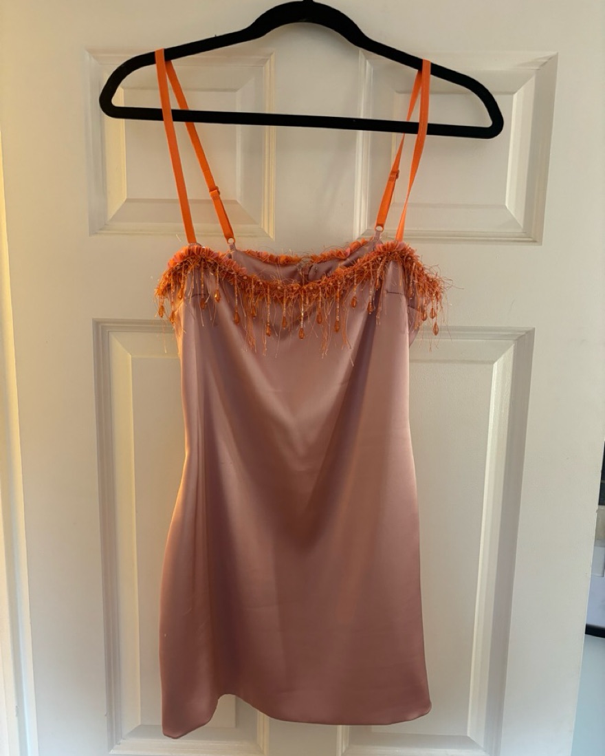 As seen on alix earle. Satin material with orange beaded trim. Such a fun mini dress for a night out. Delicate satin material so please treat with care! 🧡