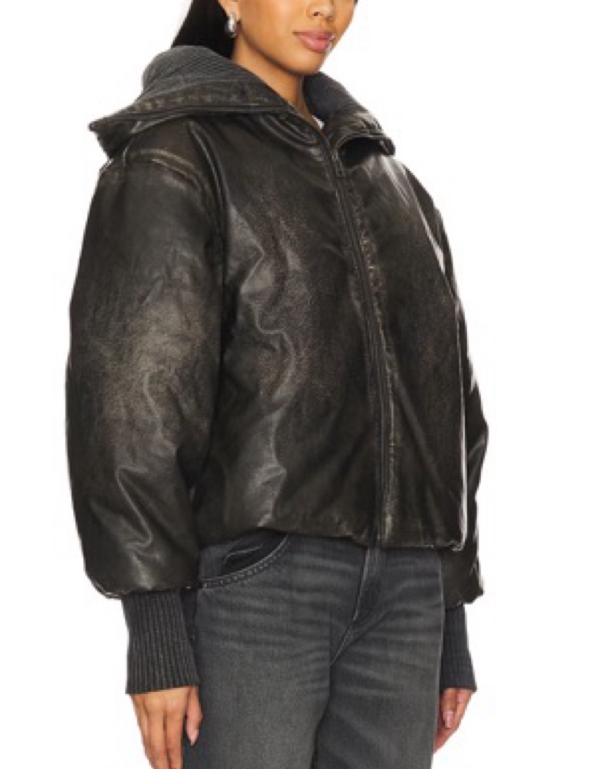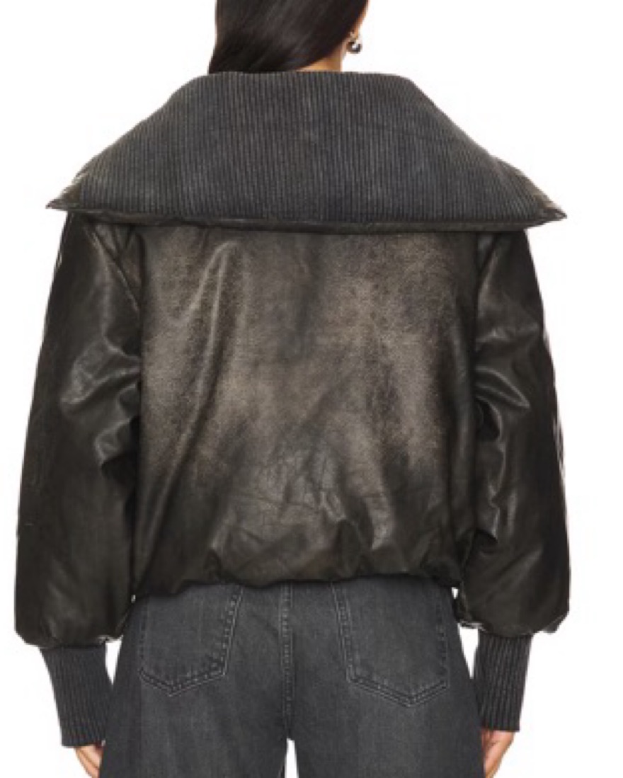 Very warm 🥰🥰 Faux Leather Wipe clean Front zipper closure Distressed Ribbed knit design on collar and cuffs