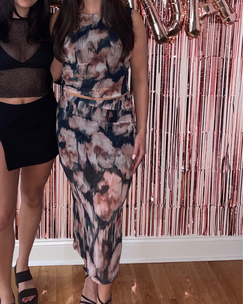 Abercrombie set worn once, mesh. Maxi skirt and high neck top. Size small