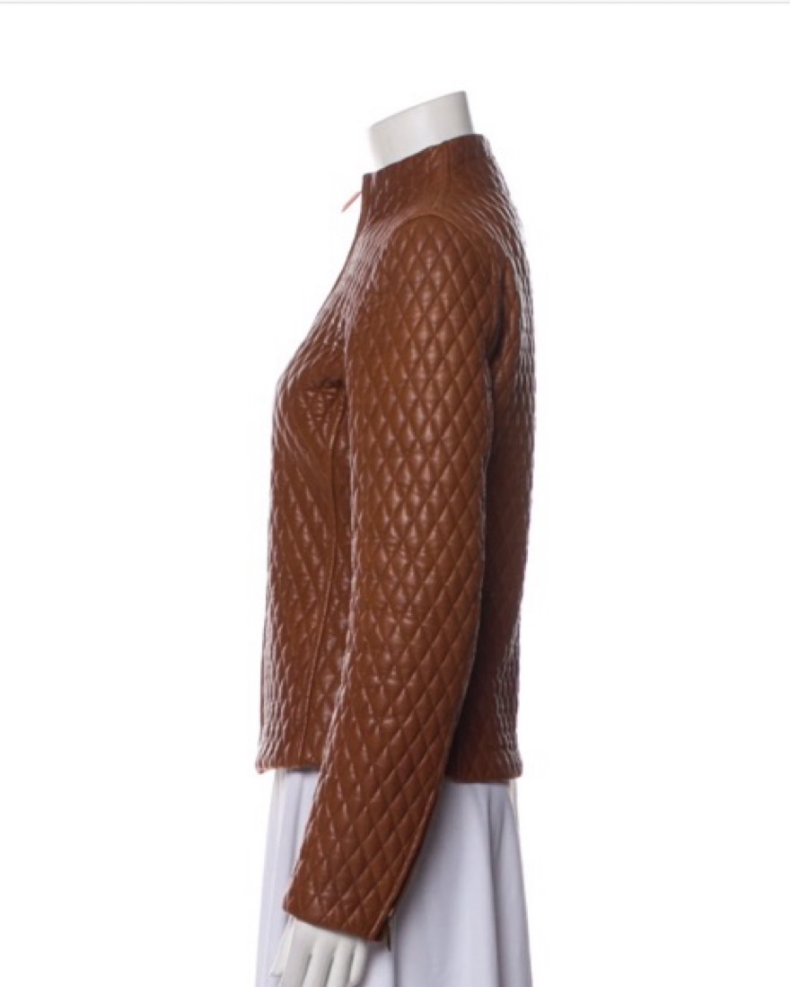 Very soft quilted leather. It shows some signs of wear (stitching on a pocket is untethered and some darkening on the leather from wear) so rental price reflects worn condition ($4980 MSRP).