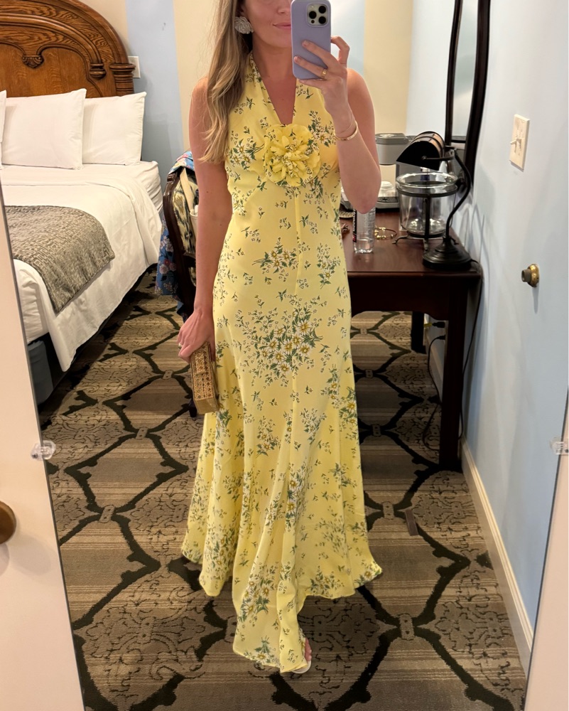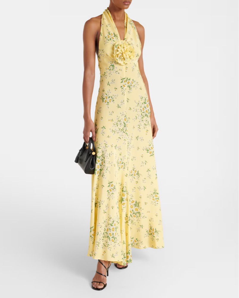 Rodarte puts romance and storytelling at the forefront of its grand and mesmerizing designs. Made from lustrous silk, this maxi dress comes in a halterneck silhouette and is completed with a delicate all-over print and detachable floral appliqué at the center.