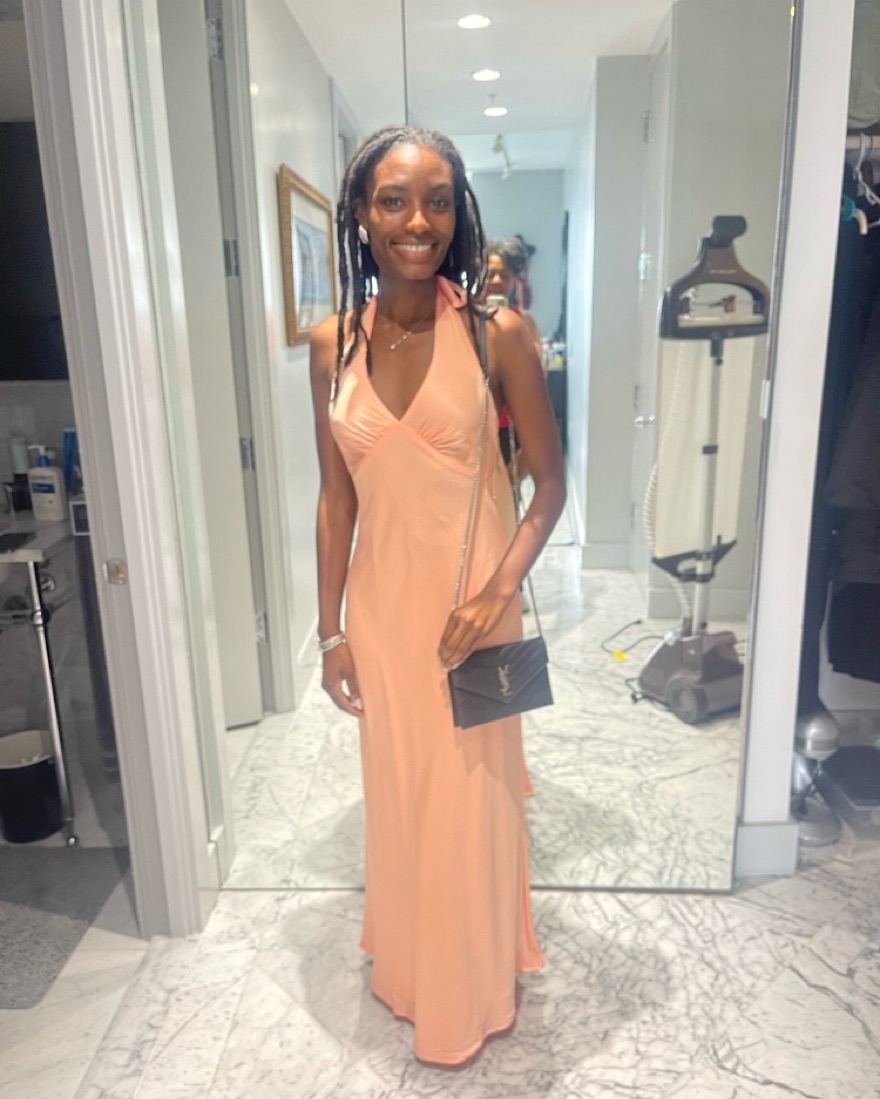 This stunning maxi dress boasts a silky smooth satin finish that drapes effortlessly for a sleek, sophisticated look. With its eye-catching peach tone and figure-flattering design, it’s perfect for weddings, galas, or a night to remember. In pristine condition! Techincally, size 2 but fits like 2-4.