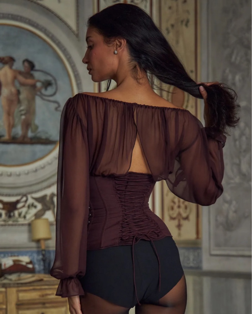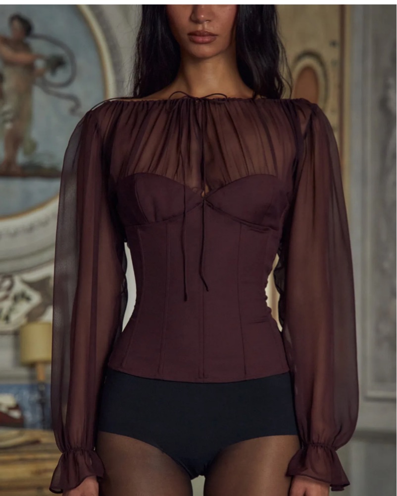 Mirror Palais Vamp Bustier Top in Chiant brown color, size S but could fit XS-M given it’s a corset and can be adjusted