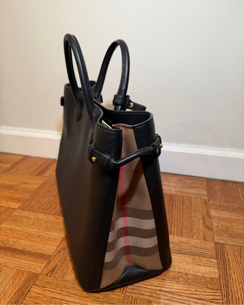 Burberry Women's Medium Leather & House Check Print Banner Bag - Black