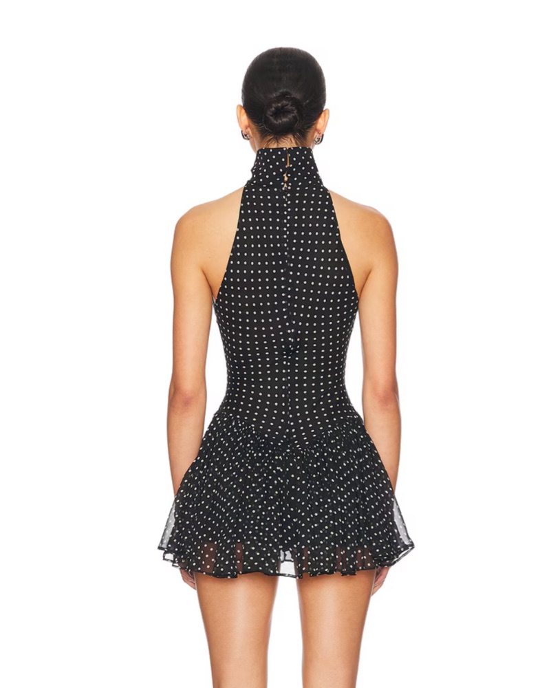 Unleash your inner goddess in The Gemma Dress by Helsa. Crafted from sumptuous printed silk chiffon, this dress brings a touch of elegance and flair to any occasion. The fit-and-flare silhouette flatters the figure, while the chic halterneck with hook and eye closures offers a sophisticated twist. D